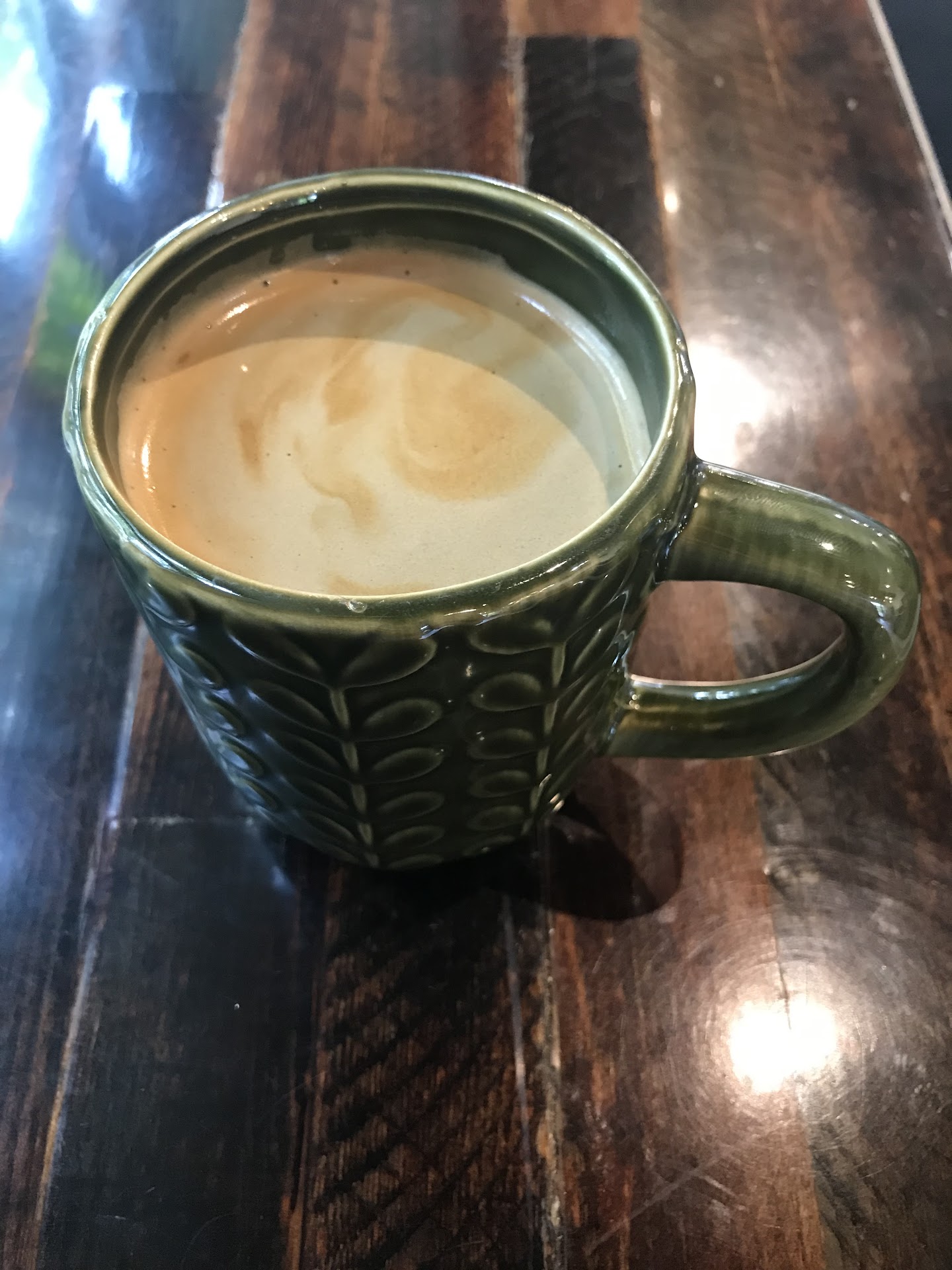 I got the chocolate chip banana bread and it was so delicious - practically like cake! The flavor was ‘lighter’ which indicated to me the presence of the vegan ingredients. As a recently known gluten intolerant person, it didn’t ‘taste’ gluten free if you know what I mean. Also very moist and surprisingly not crumbly! Also got the pistachio matcha latte. I’d never had a pistachio latte or pistachio milk but it was delicious! Not as sweet as I was expecting but it was a great addition to the very sweet banana bread. They have a large menu and offer a variety of traditional and more unique drinks as well as a variety of milk options including alternative milks for us lactose intolerant people.