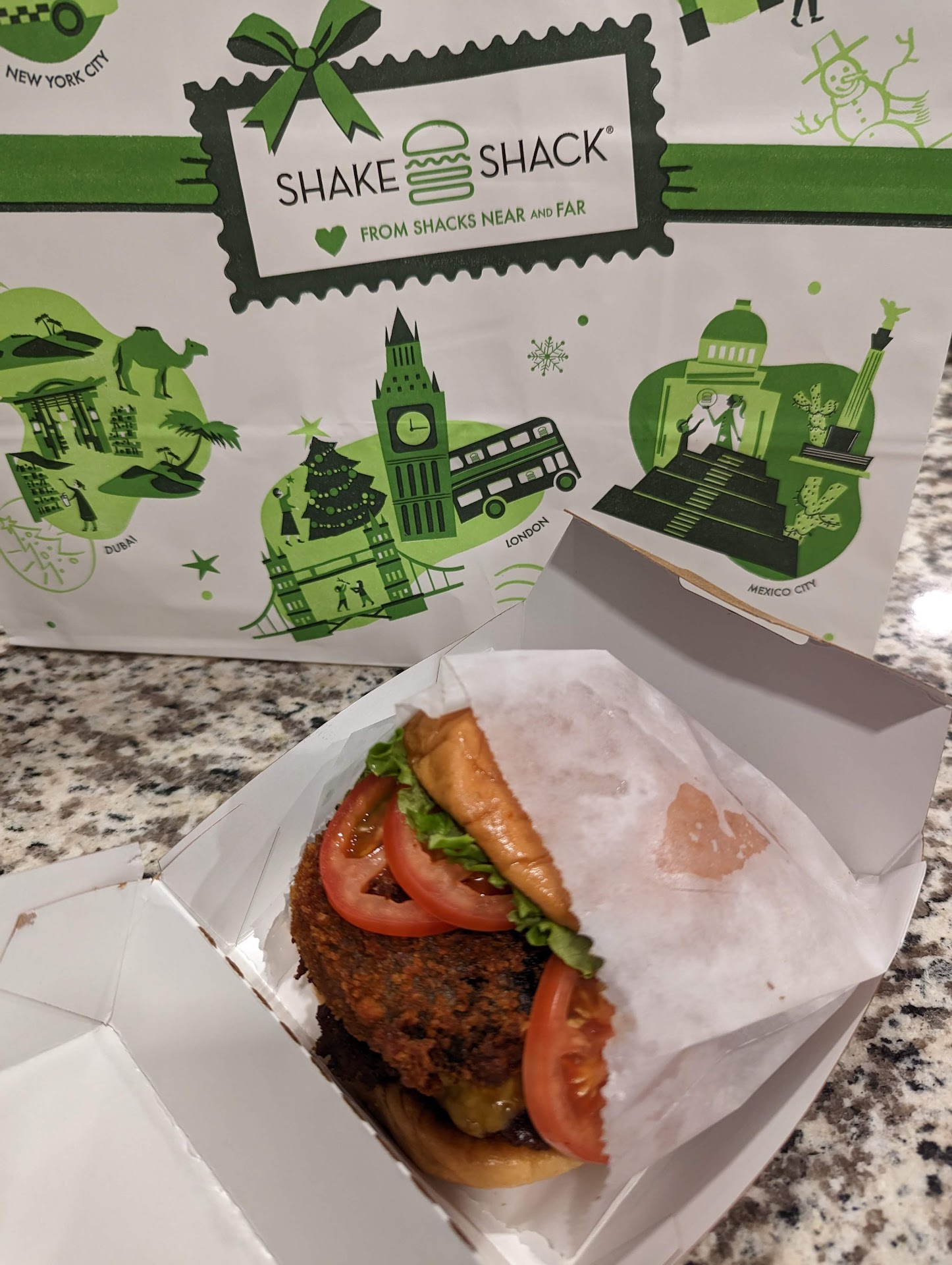 Ā Ā Ā Read moreNowhere near worth the price. I was excited to try this after hearing all the talk about it. I ordered via the drive-thru as the store is not open for indoor dining. The prices on the menu blew me away. There are no combos so you have to order things individually. I ordered the basic single Shake Shack Burger and a strawberry shake (cost was just under $13.00). It was not too crowded, there were only three cars ahead of me at the pick-up window. Since this is the drive-thru, they could probably assume most people are taking these home. The burger was not wrapped. It was in an open bag like you'd normally get French fries in, and then placed on its side in the huge large bags they use for to-go orders. Of course it leaked all over and left a mess inside the bag. It was also lukewarm when I got it, not sure how that happened, since the time to pick it up after ordering was brief.