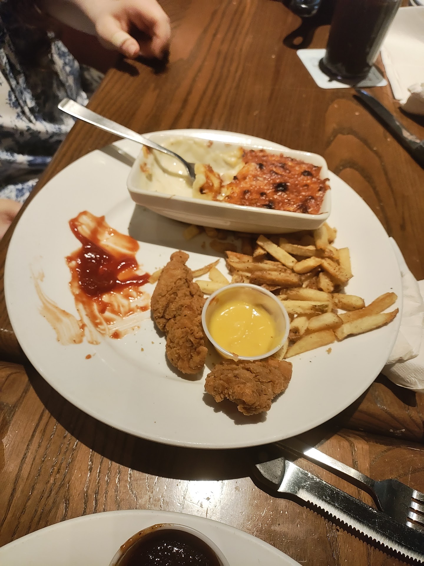 Read moreWe tried a bunch of the new apps and el pastor bowl. The tot-chos with garlic truffle aoli were pretty fantastic. The steakhouse meatballs were super garlicky but in the best way. The chimichuri was a light background flavor but the lime the provide to squeeze over the top tied it all together pretty well. The buffalo slider and whiskey glazed slider were decent. I personally like the whiskey glazed one the spicy aoli really went well with the sweet sauce. The buffalo had good spice and the blue cheese crumbles were nice. I would have preferred blue cheese over ranch dressing that's just a personal preference if you love ranch it would be perfect. The el pastor bowl was slightly spicy smokey with a hint of sweet. I would ask for an extra sauce on the side if you don't mix it up right away the rice doesn't get much sauce by the end and the sauce is delicious. We also had the Cajun chicken and shrimp pasta it's a classic dish there for a reason it's always a solid choice and usually good for 2 meals especially if you have an app or 2. Overall food was delicious and served quickly. Our bartender/server was on loan from another fridays however she was amazing. Super friendly well informed always there if you needed something but never hovered or overtook the conversation. She was a perfect balance of helpful professional and fun. We will definitely go back to try the rest of the new apps and mains and for a few...