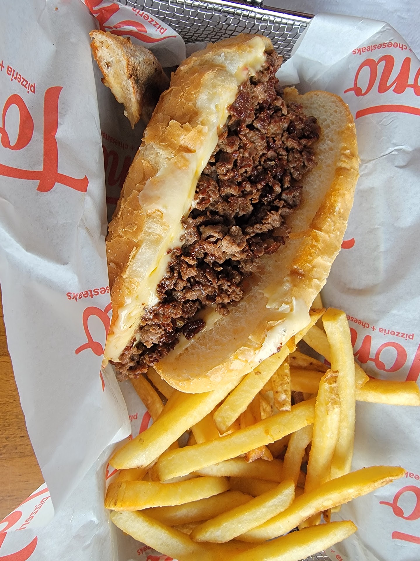 Read moreIt was good cheapers pizza and phillies, nothing amazing, we weren't expecting the order yourself so that was on us but all the tables were dirty so we had to wipe our own. We got a variety to try things. The Margherita pizza was basic, the sauce is very thin and not a ton of flavor but the cust was very nice, we got the foccacia bread with had a wonderful flavor and was perfectly cooked but was just a little dry, we tried with some sauce and was perfect 👌. We tried the classic cheese with pepperoni and again the crust was Fantastic, the pepperoni had great flavor but the sauce was underwhelming but overall a good pizza. We also tried a south Philly with pepper jack and no onions, the fries were great, the Philly was good but not a ton of flavor but add the garlic aoli and it was Fantastic as well. We ended up with lots of leftovers and for everything we only spent $45.
