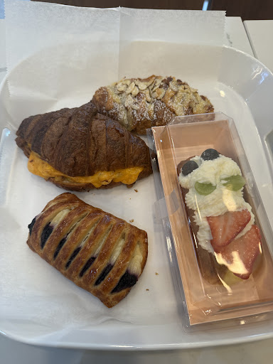 Friendly fun counter service. Bright clean and cheerful ambiance with a poster of a Korean boy and Korean pop music. Needless to say this is a Korean bakery. I gave it a try. The pastries were beautifully meticulously crafted. Just beautiful! So hard to choose. It's like Paris Baquette (Japanese chain) but this one is Korean chain. I love everything about it. The people at the counter are fun to interact with. So 5 star for them. Then the pastries... the texture and the execution are just perfection. Only 3 stars for the Korean-styled combination that seems a little odd to me e.g. very sweet custard cream with garlicky buttery pastry. I would rather keep the sugar low on that one so the sugar doesn't fight with the wonderful garlicky buttery taste. The kimchi bun...no! The mushroom pastry was great until I bit into the rather raw onion. As long as I stay away from anything Korean, I feel fine e.g. all croissants and danish seem all great. So if you like sweet and savory Korean pastries, you will love it. My crime is ...I don't like the Korean + European fusion. I would prefer either European or Japanese pastries . But I encourage you to try it. Very very nice place. They have a lot of choices so take the ones you like. It will...