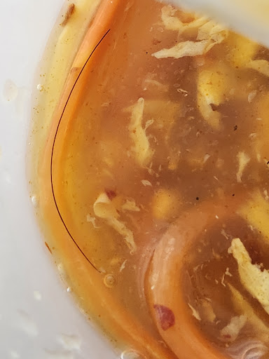 There was also a short black hair in my soup. I have really long lighter brown hair btw.