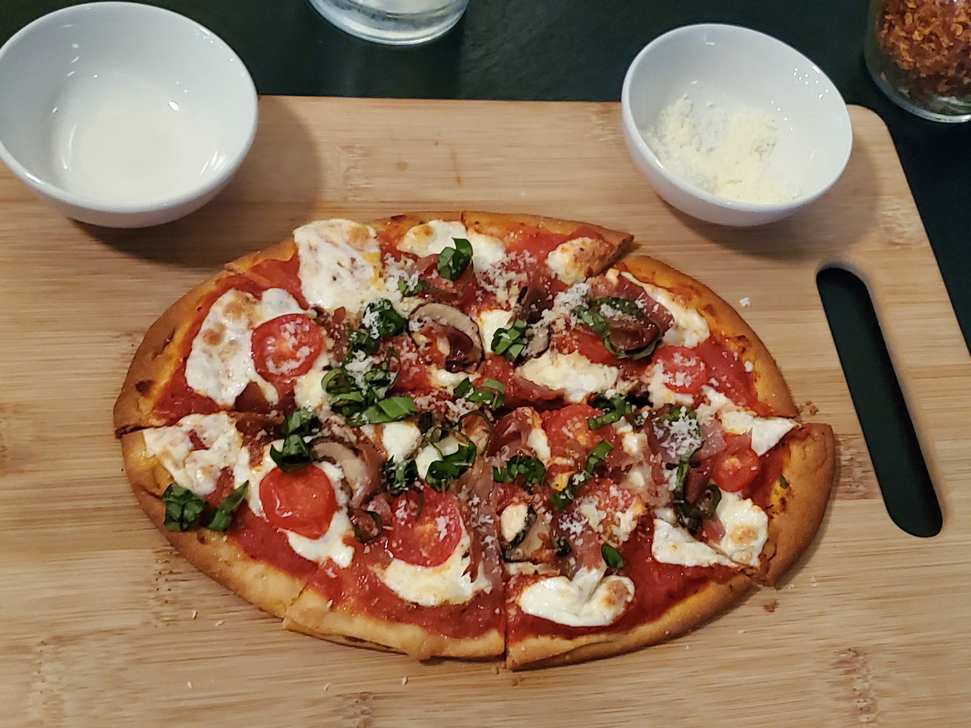 Visited here with my son last night - a breath of fresh air in an otherwise meat and potatoes small town. Asked Janet, our server, to order for me, and was surprised with the Sue Flatbread. It was petite, but delicious. The owner/cook delivered it to our table, and when asked where the name came from, she shared a really cute story. It is too long to share here, so ask if you visit. I don't remember what my kid ordered - some type of grilled meat and cheese sandwich. Again, a very petite serving, but delicious. The perceived value might be enhanced with the addition of a dill pickle side, or chips. During my last visit, for a business meeting, I had the ginormous pretzel - delicious and highly recommended - served hanging from what looks like a large chrome cup rack. Good drink menu. A single large bathroom was clean, with really nice artwork...