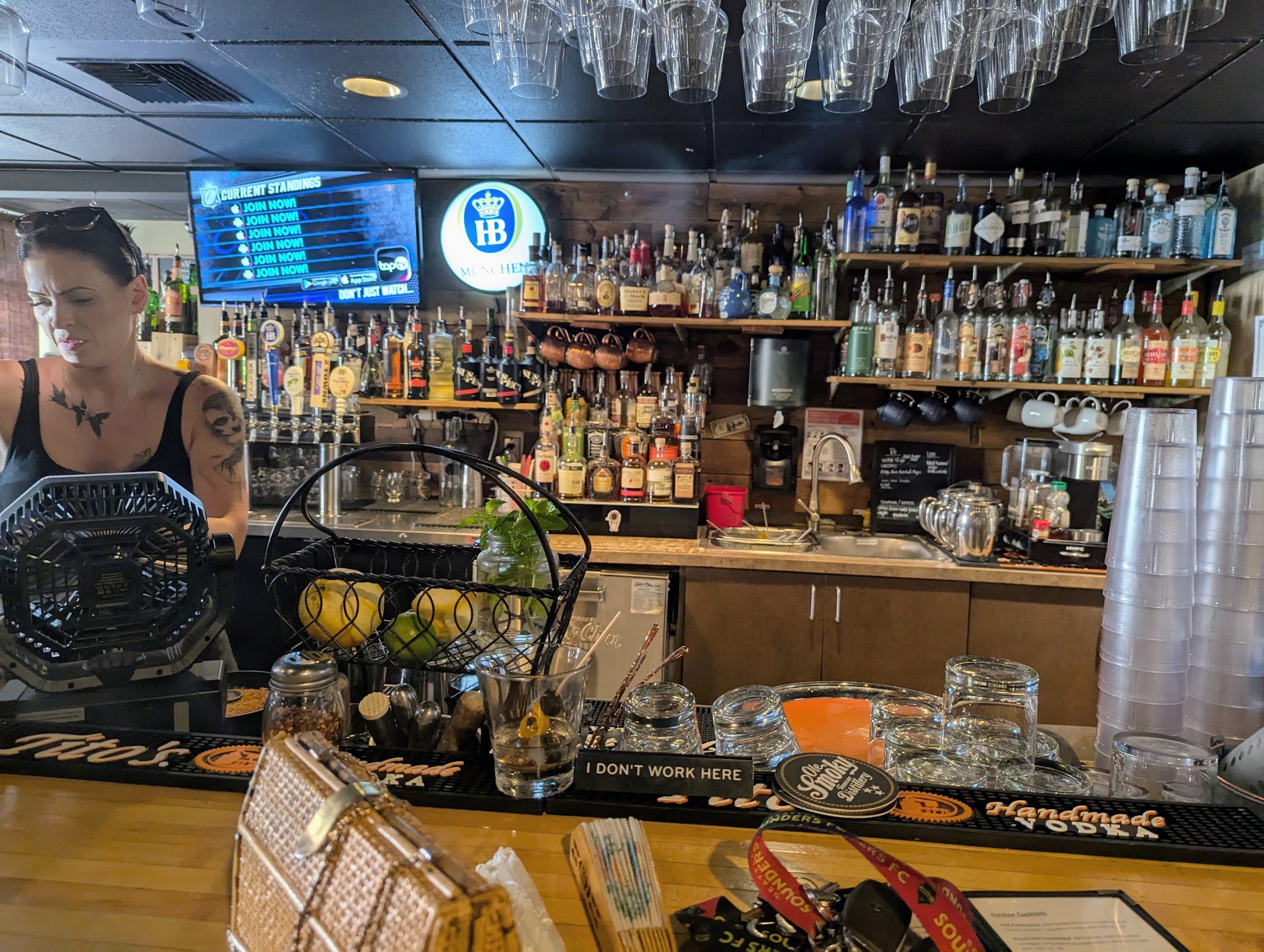 We were put off by her lack of hospitality but we still wanted to give it a chance because it looked like a nice place. Now it was very busy and we were trying to be understanding of that however that ceases to be a valid excuse when you watch the next two separate customers walk in and get served before you. Both of those people received menus and one even had their drink right away.