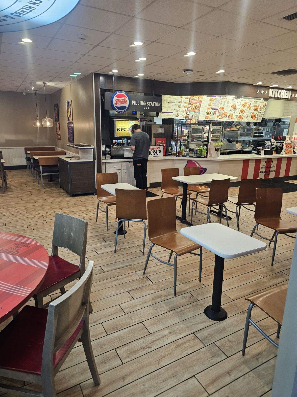Read moreThey were out of chicken. On a positive note, the employees were as sweet as my mama's homemade apple pie. A friendly suggestion to the manager/assistant manager, if you run out of chicken again, call around to close KFCs and see if you can borrow a few boxes of chicken to get you through the night. Then adjust your future order to be able and repay that stores borrowed chicken. That's what we used to do back in the 90s. Sometimes we'd have to go to several stores to get enough chicken, but that's what we did to satisfy our customers. 2nd tip, every time there is a break in customers, whoever is registering the front should be checking the bathrooms, garbage cans, washing the tables in the lounge, Etc. Every garbage was full, the condiment counter was a disaster, napkins were strewn about, every table needed to washed, the floor needed spot swept, ect. Last tip, if your soda pop machine is broken, and you do not have an alternative drink to provide a customer, do not offer the "value" meals, unless you are going to substitute the drink with something else. Some examples; a freeze, small dessert pie, cinnamon twists, caramel apple empanada, a sparkling Berry Breeze, small cake. I feel this would have helped your customers leave feeling a lot more satisfied then I witnessed them leaving....