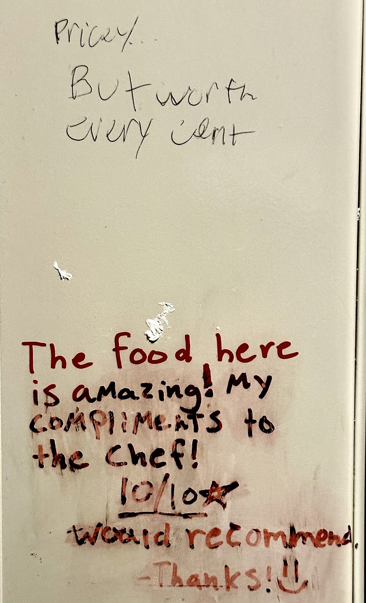 âPricey but worth every cent,â and âThe food here is amazing! My compliments to the chef!