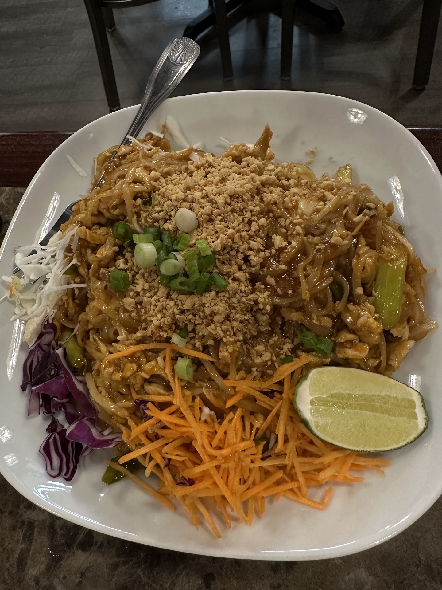 Honestly this is one of the best Thai restaurants in the Covington Maple Valley area. Way better than their local competitors on flavor, and quantity. We had got the Red Curry Noodles with beef, the Pad Basil Beef as well as I had ordered chicken Pad Thai and a Thai Iced Coffee. However the waitress was very distracted even though we were one of the only people in there, she just was a little scatterbrained and had a hard time inputting our order into their digital handheld system. They ended up bringing out a Thai Iced Tea instead of a Coffee which we promptly sent back and got the correct item. Then when they started bringing out the food they had screwed up and did a beef Pad Thai instead of a chicken Pad Thai after I had noticed the waitress never came by the table again and I didn't feel like hunting her down to complain about it anymore and just ate what came. I wasn't a big fan of the beef in the Pad Thai I would rather have had chicken but it was still good tasting even though it was not what I was craving. Even with the hiccups in the customer service this is the must eat Thai food restaurant in Maple Valley Covington. I would definitely eat there again but at time of order I'm going to ask her to repeat back what she...