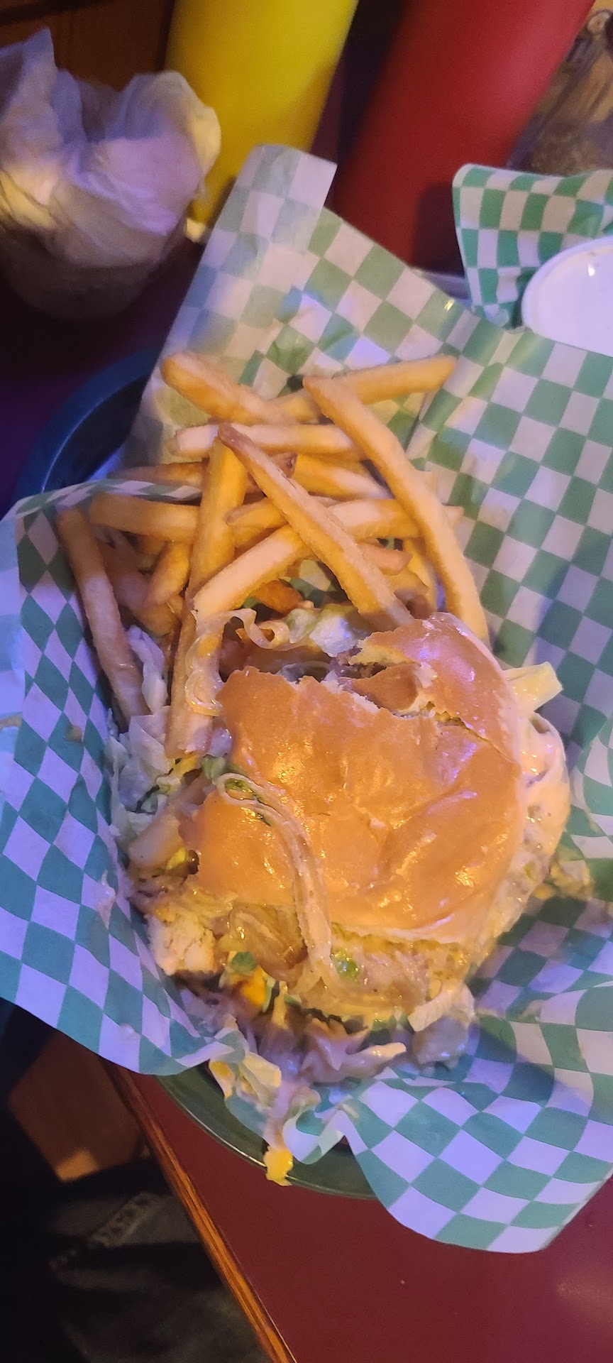 I always worry when a restaurant has pull tabs inside... I get the sense that this place doesn’t attract new customers. Food was bad. Service was bad. Let me explain: I tried to order take out but their phone system wasn’t working. I called like 6 times and each time it was pick up, 2 seconds of silence, then hang up. Idk, so I drove there. Greeting was awkward, it was like a game of 20 questions until I interrupted to hostess to tell her I’m here to place a takeout order. I ordered the Saucy Sally, sweet potato fries, and fried pickles. I waited at the bar until it was ready. Bartender was friendly but this was during NFL playoffs and they don’t have any sports on the TV, just 60 minutes on all the TVs. Nobody thought to change the channel and I’m guessing nobody wanted to watch 60 minutes at a bar. Wait time was normal, about 15 minutes, and I live 4 minutes away (1.4 miles) so food should still be hot when I got home. The sweet potato fries were ice cold like they’d been sitting out for a while, but they were crispy. The fried pickles were the opposite in that they were warm, but soggy and soft. So I popped them in the oven for 5 minutes and low and behold even I can make fried pickles crispy. The bun on the burger was one of those dry, crumbly buns like Wendy’s which I’m guessing were frozen at some point. The buns were also too small for the diameter of the meat, which was really weird. Admittedly, they have the option of a pretzel bun so that might be better. It was a messy burger, but good, it’s just that the bun ruined it. I know this place has been around a while, so they have locals that waste all their money on the pull tabs, but I’m surprised they’re still in business with food/service/experience like that. Won’t be...