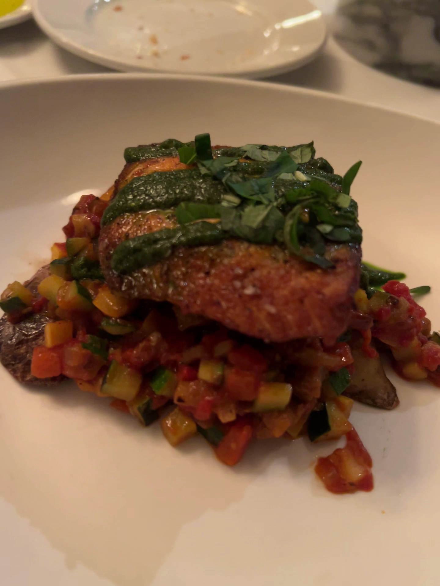 I can't believe we've driven by this place for years and didn't try it until now. We'd been missing out! We went here for a belated Valentine's dinner and did the 4 course meal. It was phenomenal. Our starters were the seafood crudo (a standout of the whole meal, so light and fresh) and the prosciutto beignets (not the actual name but that's basically what they were. Salty and pillowy melting in your mouth but very rich!) For the pasta, I got the Raviolo which is their signature dish. Don't skip this. It's MEMORABLE. My husband got the spaghetti with the chili flakes which was delightfully spicy. For the entrees, we got the porchetta and the tilefish which were both delicious and the vegetables were beautiful. Dessert choices were their cherry cheesecake and the butterscotch budino. My husband doesn't even like cheesecake all that much but this blew him away. The budino was delightfully light and whipped like a pudding with just the right amount of salty and sweet. Our server was super helpful and knowledgeable and guided us with a bottle of wine to pair with it all that we would have never chosen ourselves. We LOVED it and it went perfectly with everything. Overall, we would go back in a heartbeat and try the 7 course chef's choice experience. If I had to be nitpicky, the only thing I would have liked was a candle on the table because the lighting was a bit dim and drab in the back room we were in, and that might have helped it feel more like a special date/occasion. With a new baby we don't get out much, so ambiance is important to us! We'll...