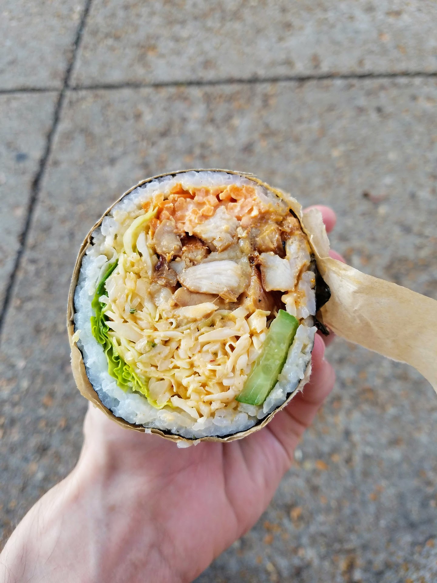 Read moreThe food is fresh and plentiful. The problems are exactly what you'd expect from a sushi "burrito". If you're a sushi lover like I am, you might notice a problem with the construction of a sushi burrito. Sushi roll slices are made to be one bite. You get the full taste of the seaweed, rice, cucumber, salmon, avacado, and spicy mayo all on one bite. Now imagine a roll so big that you can't get all that in just one bite. One bite you get avacado and cucumber, and the other you get salmon which makes every bite taste very inconsistent. Also since it's a burrito there is no dipping in soy sauce/Wasabi which is disappointing nor is it offered here. You can get extra "OG" sauce for 25 cents which is nothing other than spicy mayo. Even still the extra spice does not replace the taste of the soy/Wasabi combination. Also because it is again.... a burrito, the ratio between the seaweed/rice vs. the other ingredients is way off balance. Lastly....... because it's a burrito, the ingredients want to gush out the opposite end while biting into it making it pretty hard to eat. For the price of the food, the ingredients are all there to justify the price, but the execution of those ingredients is pretty poor. Had they just made me properly sized sushi rolls out of all of the ingredients instead of a burrito, the food would have been stellar. Not really...