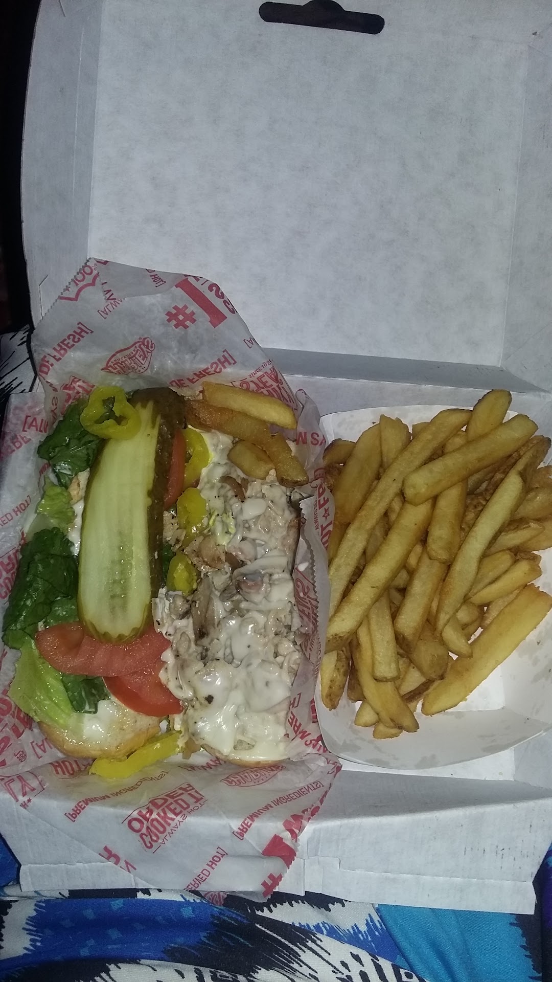 Read moreI am a vegan so I cannot say much of a review for their sandwich options, but I work at the mall and I occasionally come here for French fries. They always make them fresh, and they give you a really decent serving for the price. In this image this is a large size, and I had a handful already. 😆 The fries are always so hot and delicious!! 🤤😋 They have a decent selection of condiments & seasonings. I really recommend their lemonade it is bomb and definitely hits the spot on a hot day. Services always super quick and on point, employees are always extremely friendly and accommodating. Play overall have a very good vibe and good food. Definitely recommend if you're a french...