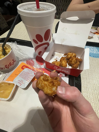 Read more8-13-25 @9pm They got my order wrong. I asked to upgrade to mac&cheese from french fries for the #1 meal. I got to the window, recieved the food, went through the bag and realized they gave me fries and no mac. I kindly told the girl at the window ( Who never repeated my order back to me, just asked for my name) and she proceeded to roll her eyes at me. She ( being annoyed) asked for my food back ( which CFA is never supposed to do) She called some younger guy in the blue striped polo over, he said to take the fries out of my bag and throw them away. ( I guess they thought I was trying to pull one over on them? not sure. Usually they just keep them in the bag) Instead of grabbing a napkin or a glove, she sticks her hand in my bag of food and pulls out the fries, and sticks the bag of food back out of the window to give to me. I'm sorry, im really not picky usually, but money is disgusting. On top of that, you're touching the window and everything else. There was 3 cars behind me in line..... This is the only store I CONSISTANTLY have to ask for my sauces because they never get it right. I was a store manager for 2 1/2 years at a CFA in Maryland. I get it, I know how it can be. But I also know that- that job... is not THAT hard. And to get annoyed at me because your order taker didnt input the meal correctly? I'm sorry, but thats completely innapropriate and I had to write a review on here.