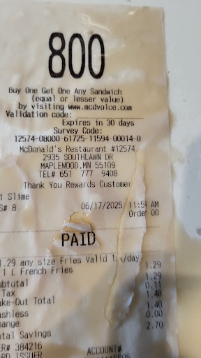 Read moreI just went to this McDonald’s on Southlawn in Maplewood. I ordered a soda and cappuccino. So they gave me the cappuccino in a large cup which I ordered a large. It was probably only maybe a little more than half full. It wasn’t filled all the way to the top. Most of it was foam. So you see in the picture where the White tag is. It’s probably the. Coffee is right where the Café letter is. That’s where it stops. And then the rest of it was foam. So I went back in to tell them that can I get a little bit more because you pay almost 4 dollars for this and they put it in a large cup, and the person had an attitude and waslike. It only has so many ounces that we put in there and then then that’s it and then but why do you put it in a large cup, and charge me a large cup price, but then you only give it to me where it says Café and that’s how much cappuccino I get. That’s not right that’s not right at all. I could go to Caribou and they fill my cup up to the rim and they give me whip on top of that. But I don’t want all my top of my cappuccino latte or whatever. I get there to be a little foam on top. I believe they charge too much. I think the person was wrong. And I like McDonald’s coffee. I like the regular coffee. I like the latte. I like the cappuccino but they just don’t put enough in there. They don’t put in what it’s what they’re supposed to and what you pay for. I paid for 4 dollars for some cappuccino, but I only got...