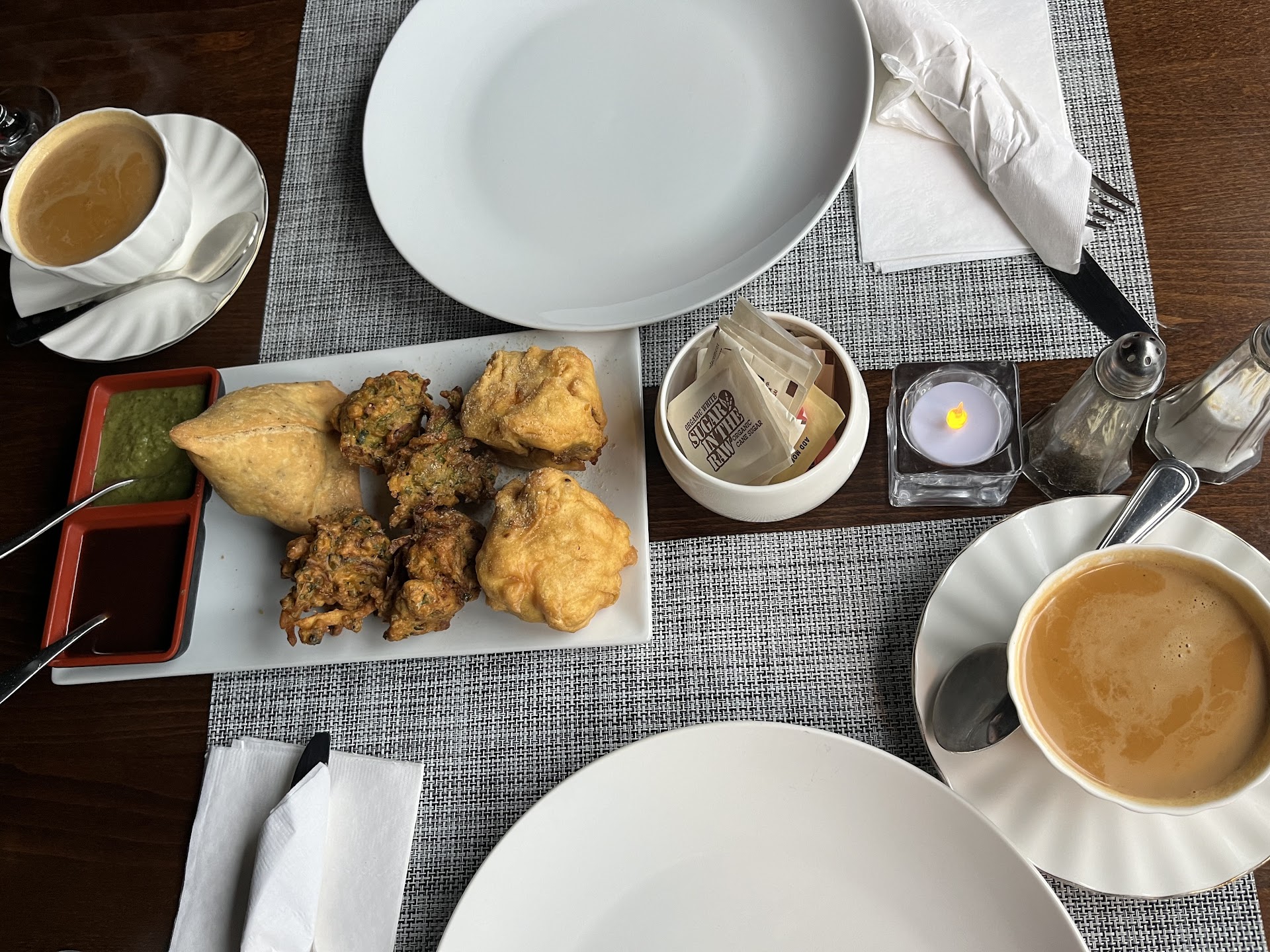 Me and my friend went on a rainy day to grab snacks and have chai but the waiter seemed miffed that we only ordered so much. I ignored it regardless. Once we ordered the sampler platter, there was only one samosa which was a let down considering every other type had at least 2.
