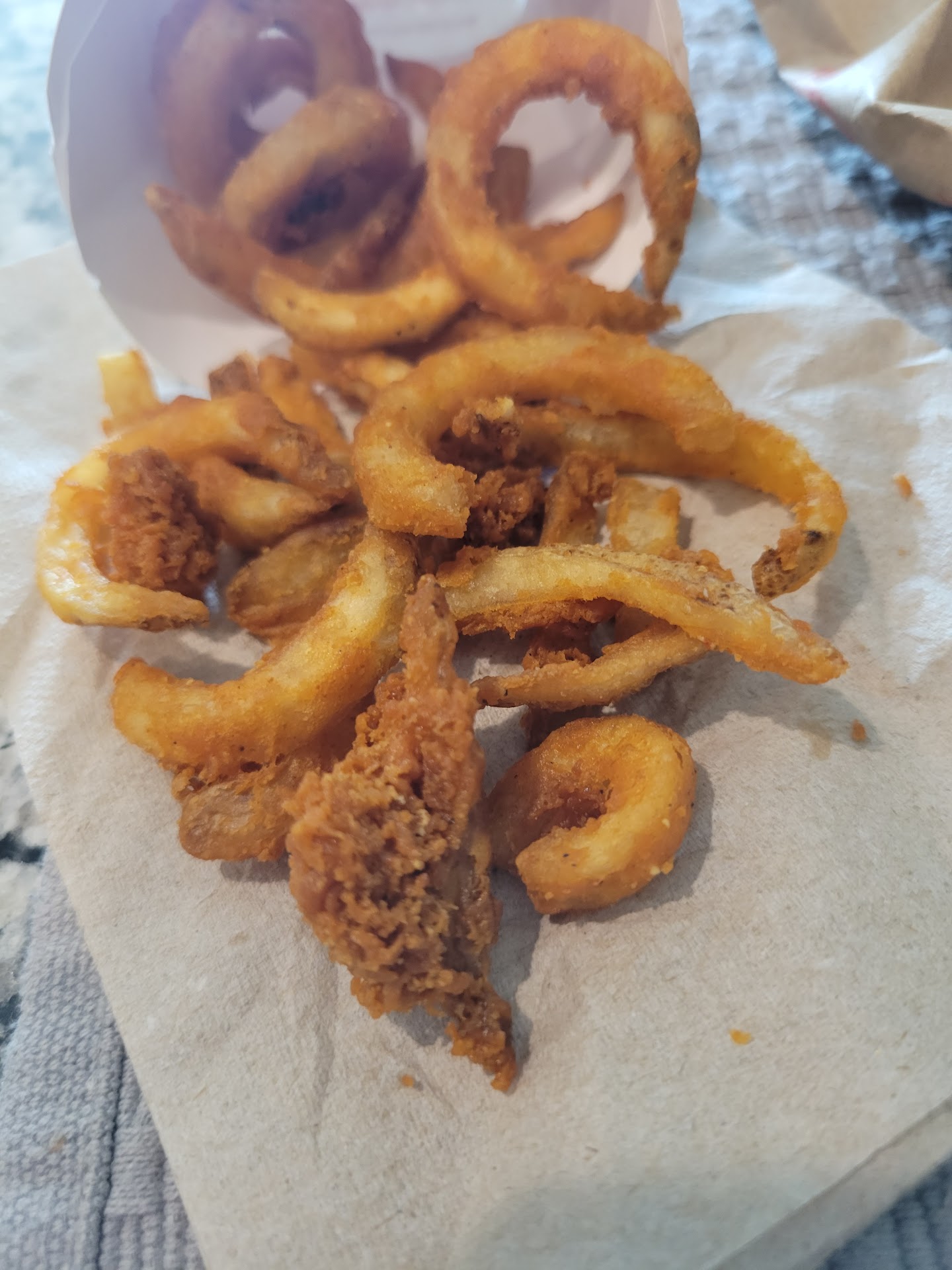 I pulled up, took a moment to look at the menu, then ordered one sandwich and a small fry ($11). Drove around to the window and paid. Then, was asked to pull around front and park because they had to make fresh chicken for the sandwich, which I appreciate! However, just about the time I wondered if they forgot about me and I started calling the store to ask, someone came out with my food (which ended up being subpar - not awful, not fantastic).