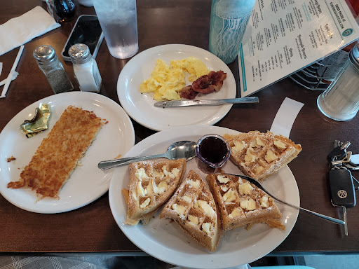 Read moreStopped in on a Sunday. Was busy but the wait was less than 5 minutes. I kinda wanted to leave after sitting down at table with two companions. It had sort of a smell I didn’t think was pleasant. My have been the cleaning solution used on tables. Anyway, ordered our food, one ordered the Fortune (she said it was good and it was a large serving), another ordered the chicken salad sandwich, I ordered the Wingdinger. Hash browns were super thin, and crunchy as in overcooked versus a nice brown crust. No potatoes underneath, just the crunchy part. And very little cheddar cheese which was highlighted on the item description. Eggs were ordered over medium and they came runny white with a not spicy sausage gravy on top. It was supposed to be spicy ( I know that is subjective). Anyway, didn’t want to send it back since companions food was there. So food was not good for me, fair to good for companions. The place is EXTREMELY loud. Couldn’t hear conversation at table. Lastly, the floors had trash on them from previous diners. Just got the feeling the place wasn’t very clean. Watched bus boy just wipe food onto the floor and use a dirty looking cloth to wipe tables. . ...