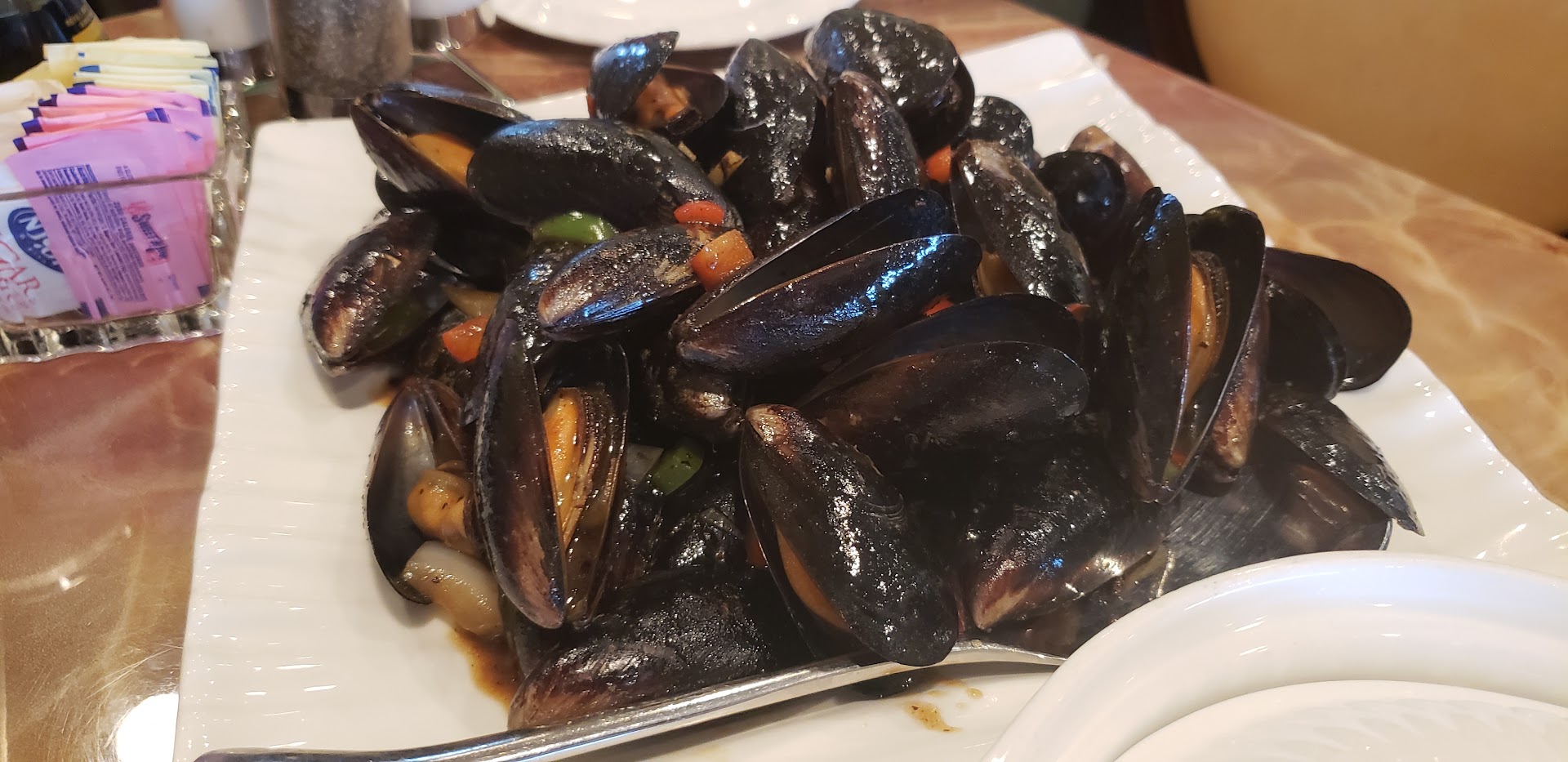 A funny aside, there was a small, inconspicuous reservation marker on our table that that our name in both the western alphabet and in Chinese. It soon became clear that owners and staff were Chinese speakers who used motions and specialized in the shortest possible sentences. Not at all like the customary over-formality in American style restaurants. You know, pleases and thank yous starting and ending every sentence. Maybe a "perfect" or 2 thrown in.