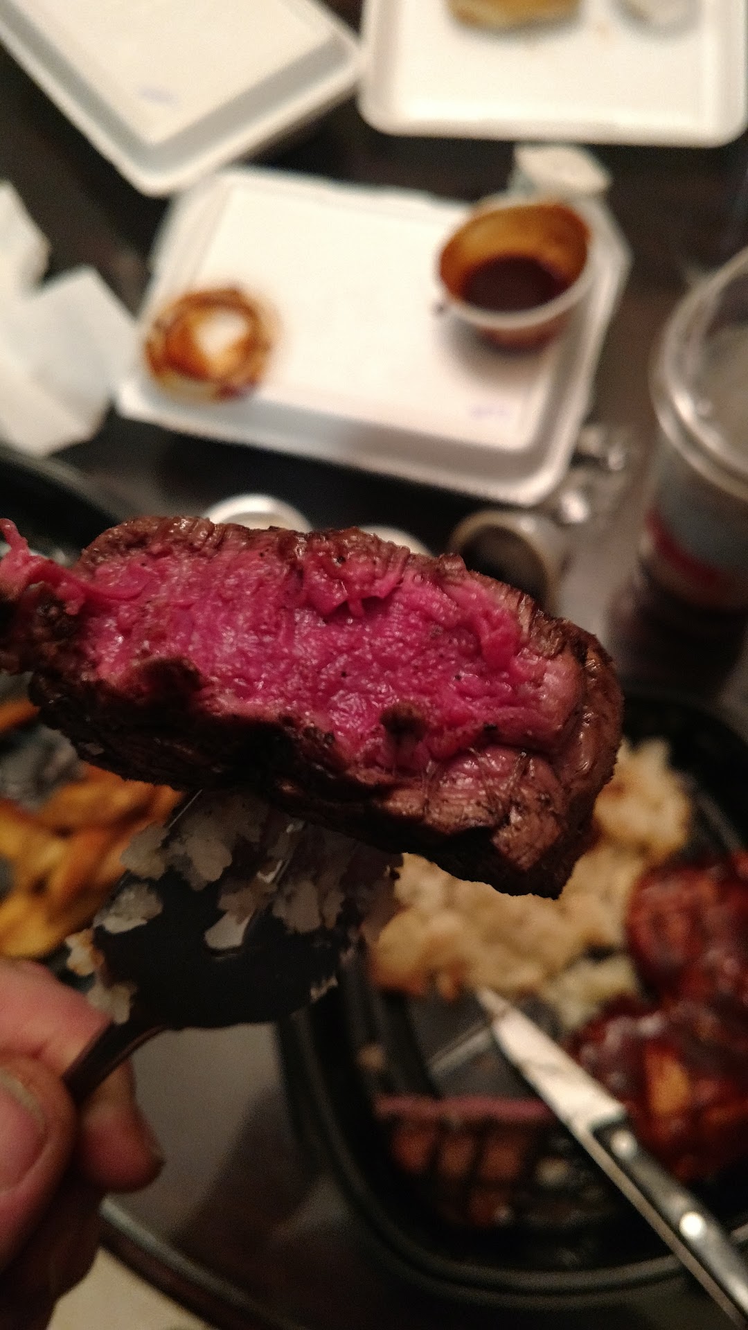 What frustrates me even more is that this wasn't an isolated incident. In my last three visits to this location, whether ordering through the app or dining in, I received a rare steak when I specifically requested well done. When I pointed this out to Manager Turquoise Polo Shirt, their response was disheartening. They essentially conveyed, "Because we're busy, you shouldn't expect excellent customer service, and we'll cook the steak as we see fit."