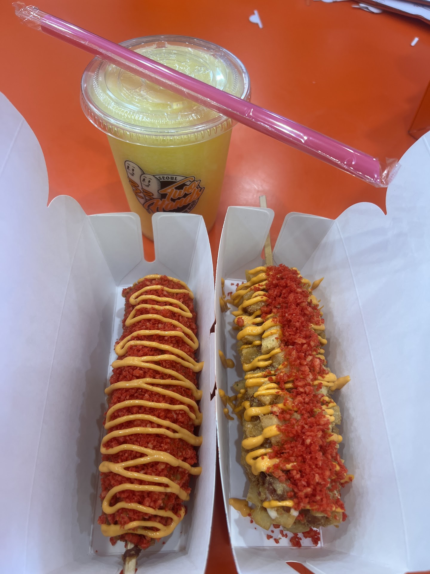 Read moreRecently opened, I was excited to try this Korean hot dog experience especially because family members raved. What a disappointment. The coating on my dog was undercooked and an unpleasant gummy experience. Only provided 3 plate baskets for the 4 of us. Two staff were conducting a battle of the volume knob blaring K-pop music. One of our party was slightly injured by an exposed staple on the bottom of the very uncomfortable seats. If you want to try this, give them some time to work out the kinks. I will...