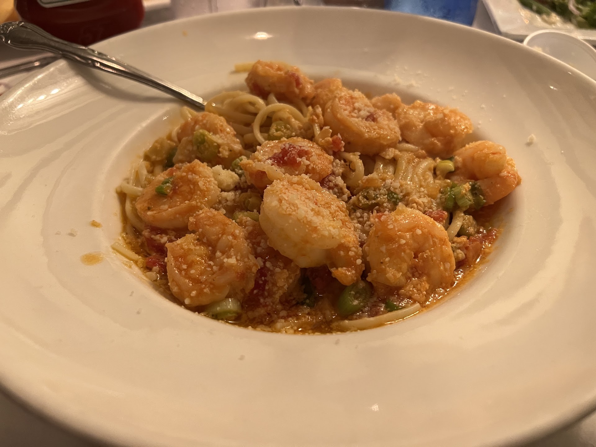 The Shrimp Scampi is probably the best I’ve ever had. Full of flavor, brimming with plenty of garlic and a touch of tomato sauce that creates a nicely balanced scampi. They load it with shrimp and serve it on perfectly prepared Al Dente linguine.