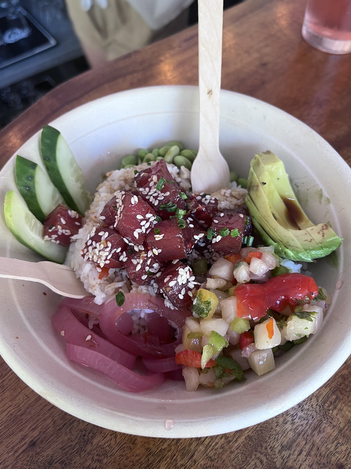 Read moreBongos Beer Garden is a true hidden gem in the Keys, and I’m so glad we stumbled upon it! From the moment we walked in, the laid-back atmosphere and great music made it the perfect place to unwind. It has that ideal Florida Keys vibe — casual, welcoming, and full of character. The food here blew me away. The quinoa salad was honestly one of the best I’ve ever had — super fresh with bold flavors, and the candied walnuts gave it that perfect sweet crunch. I also loved the tuna bowl; it was packed with fresh ingredients, and the edamame added a great texture and flavor balance.