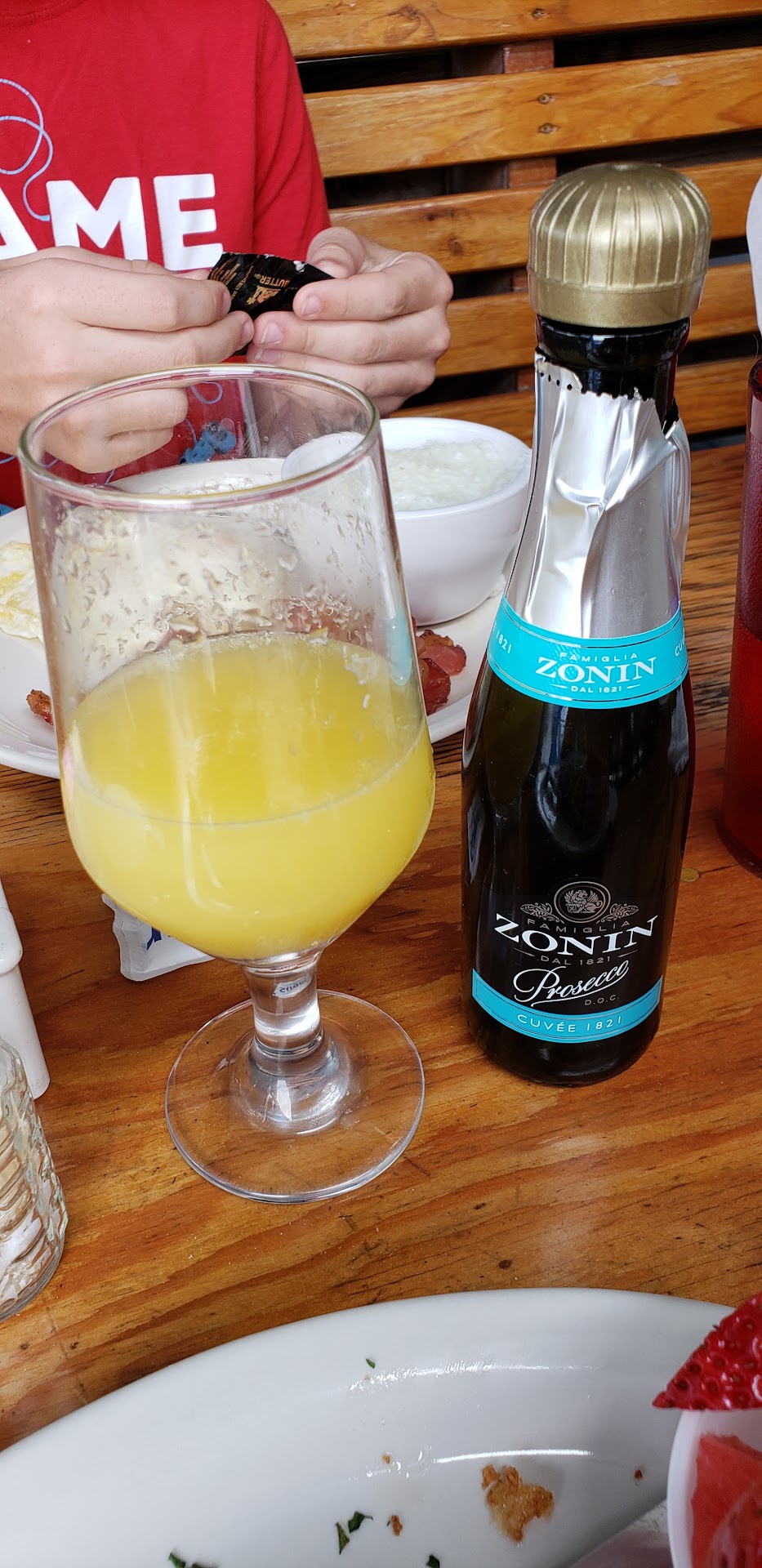We ordered coffee and mimosas for the adults. The coffee was very smooth and delicious. The mimosas come out with the OJ in the glass and a split bottle of Zonin on the side. So technically, you can just drink the prosecco without the troublesome orange juice! Love this.