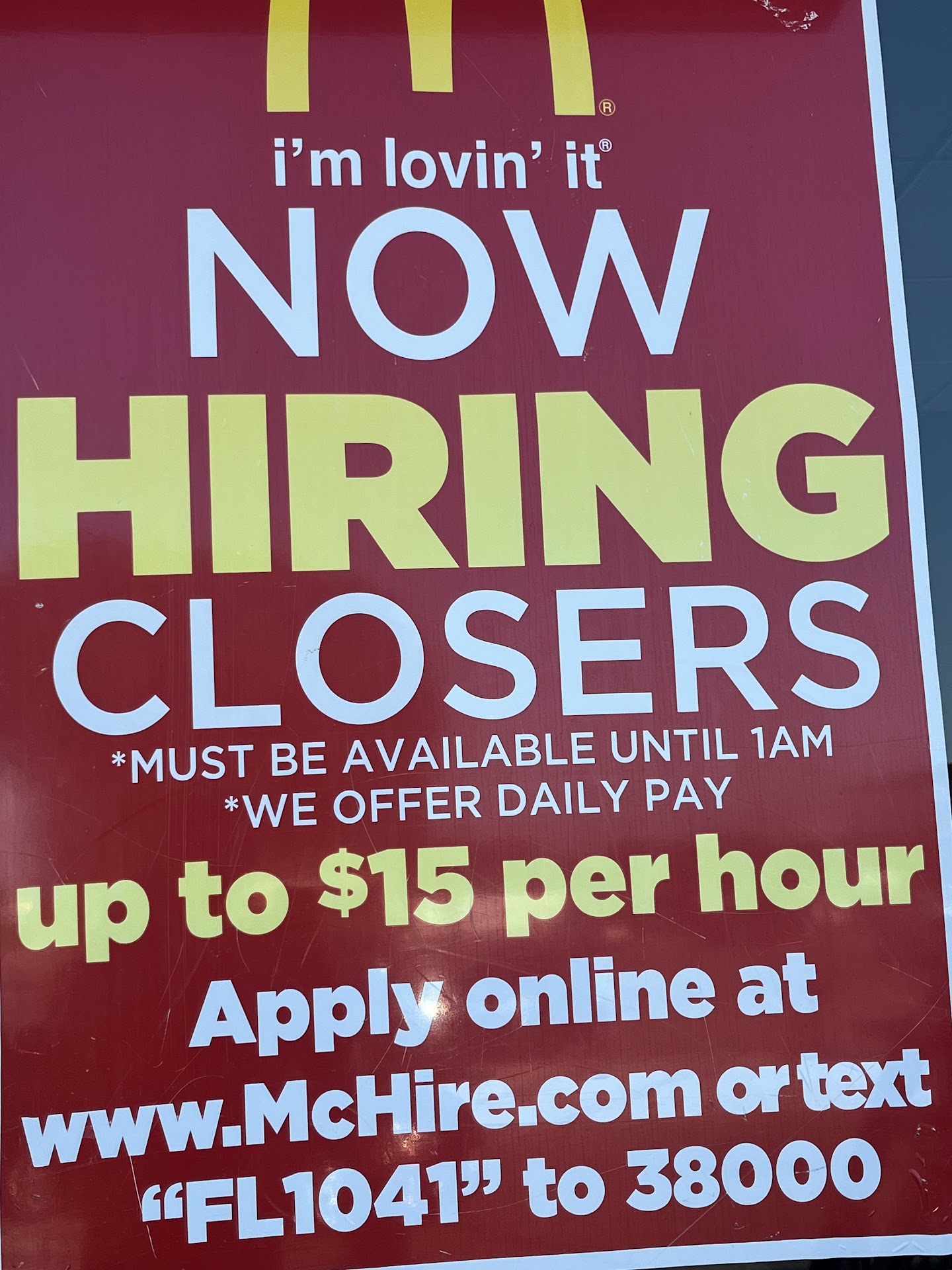 HOW does this location have 2 stars!? The absolute WORST service I have ever got a fast food restaurant. For the amount of time it took for me to get a McChicken, I could’ve sat and had a 3 course meal WITH dessert. The drive thru was down and they didn’t have a sign to say so. I sat waiting to order for 20 mins. I couldn’t reverse and attempted to order at the window since I was not dressed appropriately. There went ANOTHER 25 mins! The line isn’t moving at all nor is there any movement going on in the front cars so I go in. I was able to order quickly because of the kiosks. I know some who didn’t use the kiosk waited 15 mins to order. Anyways, my food is ordered so I get my cups to get my drinks. NONE of the drinks that I wanted had anything in them!!! It reaches 15 mins of waiting for my food. I tried to talk to the manager to get my money back so I can go. He stood around doing nothing. There were 3 kids standing not doing anything and playing on their phones. There was a kid in the back who was creepily staring at me and another woman. It made both of us extremely uncomfortable. I finally got my food after waiting for 39 mins from the time that I ordered. My food ended up being wrong too. So all in all I waisted over an HOUR just to go back to my hotel with no drink and food that I can’t eat because I’m allergic to what they put on it. I have never in 25 years had such...