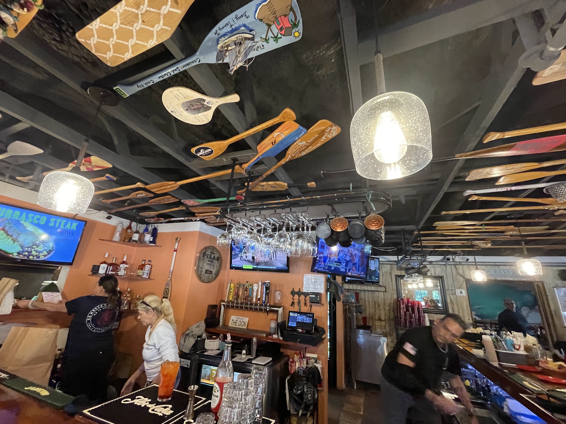 After a drive down to Key West we were looking for a place to grab a late lunch that was ‘authentic Keys’ and not too touristy or crowded. We found a gem on Marathon Key. This little place situated on HWY 1 has a lovely beach vibe with a sports bar note of several tvs tuned to different channels - weather, sports, etc., viewable but not loud or distracting. We were seated indoors but there is a refreshing cross breeze and sufficient fans to circulate the air. Hightop tables indoors, lower tables on the wraparound porch. Many notable bonuses - large, tasty portions of absolutely fresh food made on site (sauces, pickles, jalapeño pickled, and so forth), quick, friendly service (Matt was attentive but comfortable and relaxed, appropriately chatty), clean dining area, and most especially very clean restrooms for paying guests (even the men’s room was clean and fresh smelling!). They offer a lovely local salt scrub when washing up after using the facilities. Our entree was a special of the day - seafood wrap with large chunks of shrimp, lobster, and crab in a light sauce with crispy lettuce and red bell peppers, wrapped in a tortilla and served with massive crispy fries. We could have easily split one but took away leftovers. We added a slice of key lime pie to our take-out leftovers because every other element of out visit was exceptional so the pie is expected to be also. EDIT: they claim to make the best key lime pie and though I haven’t tried ALL versions, I must say this one is spectacular. Rich, dense, tangy-sweet, monstrous portions and clearly made from scratch down to the crust. Though we were drinking only unsweet tea (fresh!) this time, the bar seemed to provide a nice selection of draft and bottled beer and cocktails. Happy hour started at 2 pm. Prices are competitive. If we’re back in the area we will visit again. If we were local it would be...