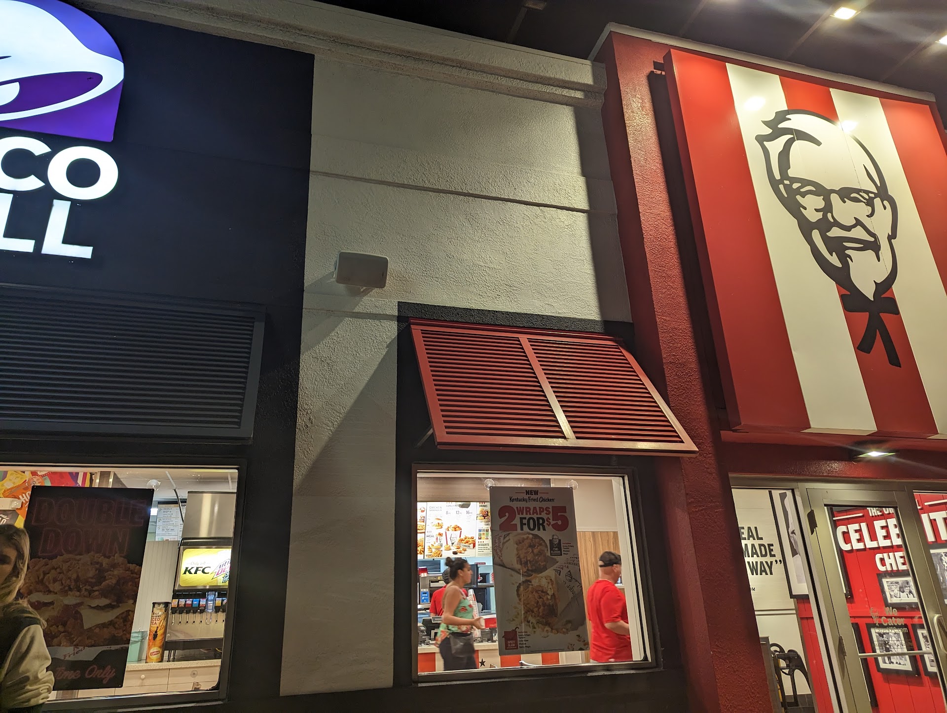 I just moved to Marathon last week, and read the reviews of this location. They're not great. Although I always tread cautiously with combination establishments, (ie Taco Bell/KFC) I had to find out for myself, this being the only Taco Bell in a reasonable range. First impressions: 1) While not the cleanest restaurant I have ever been in, it certainly isn't the worst. 2) No employee at the counter to recieve orders. I had a fleeting moment of regret about not listening to the reviews. Then Boom! 3) Guy comes out of nowhere and fast. Competent service, but didn't really know the menu. I had to explain and point to what I wanted. No substitutions, just a regular menu item. , other than that, he knew how to do his job. 4) Food comes out in under 5 minutes, hot, and honestly great.