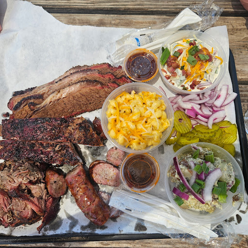 Ā Ā Ā Read moreItās a food truck and you are sitting outside on picnic tables under a large shade canopy which is a perfect way to enjoy some truly amazing BBQ. This place has ruined all future BBQ as I feel nothing will ever be a good as this place. We tried the 4 meat sampler which was way more food than the two of us could eat. The moist brisket was the best I have ever had. The pork ribs, pork belly and sausage were all fantastic. We tried the jalapeƱo cream corn, potato salad, and cucumber salad as sides which were great and plentiful. I cannot say enough great things about this place. We gambled on the unknown to us side of the road food truck and were blown away with the quality, taste and quantity of food. Top...