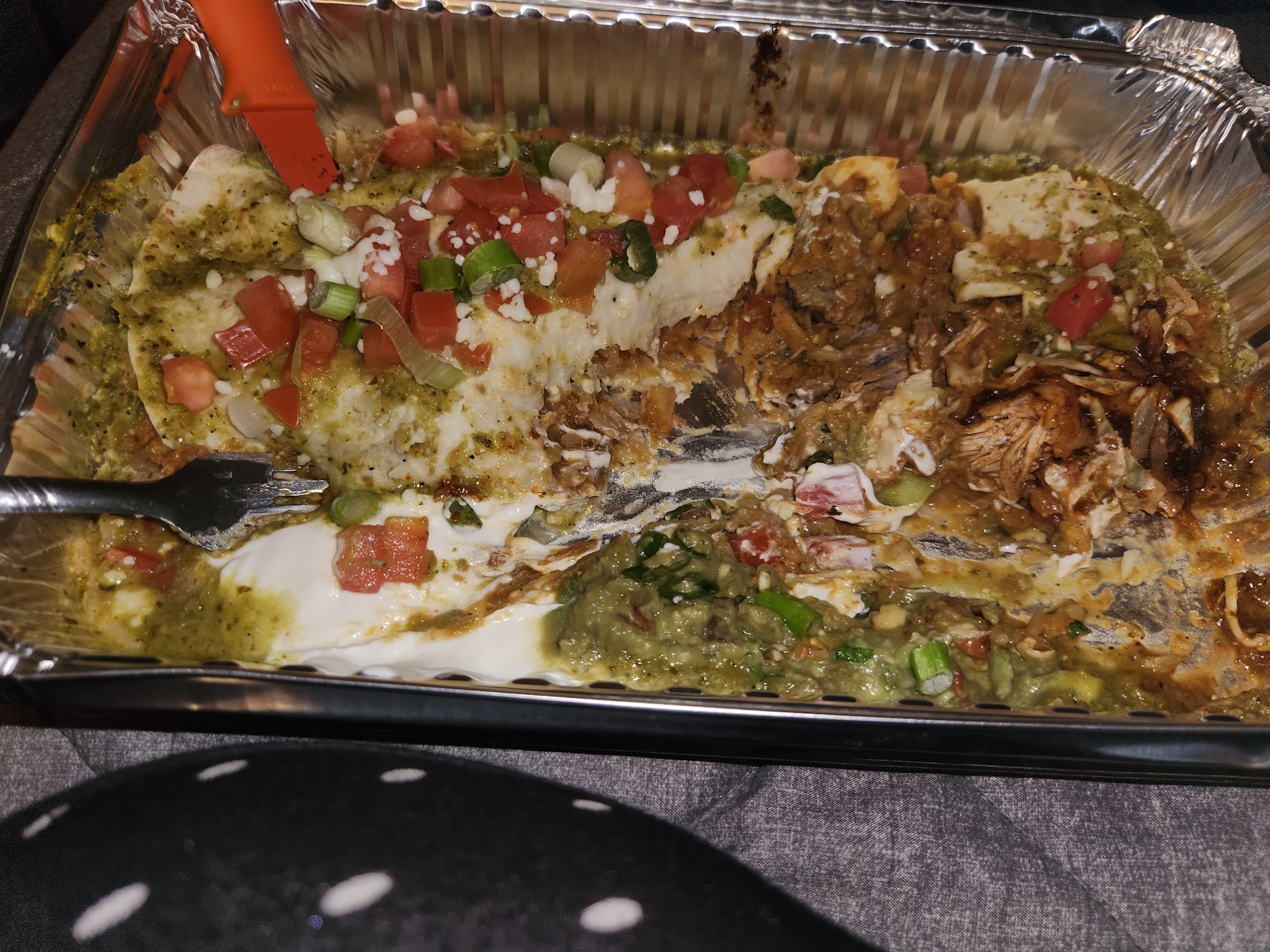 We also got the Enchiladas de Mole Poblano (also BOGO free on Uber eats). We didn't expect such huge portions and since we both have the day off from work figured we would try these as well. I tried a bite and they were filled with flavorful, shredded chicken. SO GOOD! There's so much food we have plenty leftover to bring to work tomorrow for lunch. We definitely will order again!!