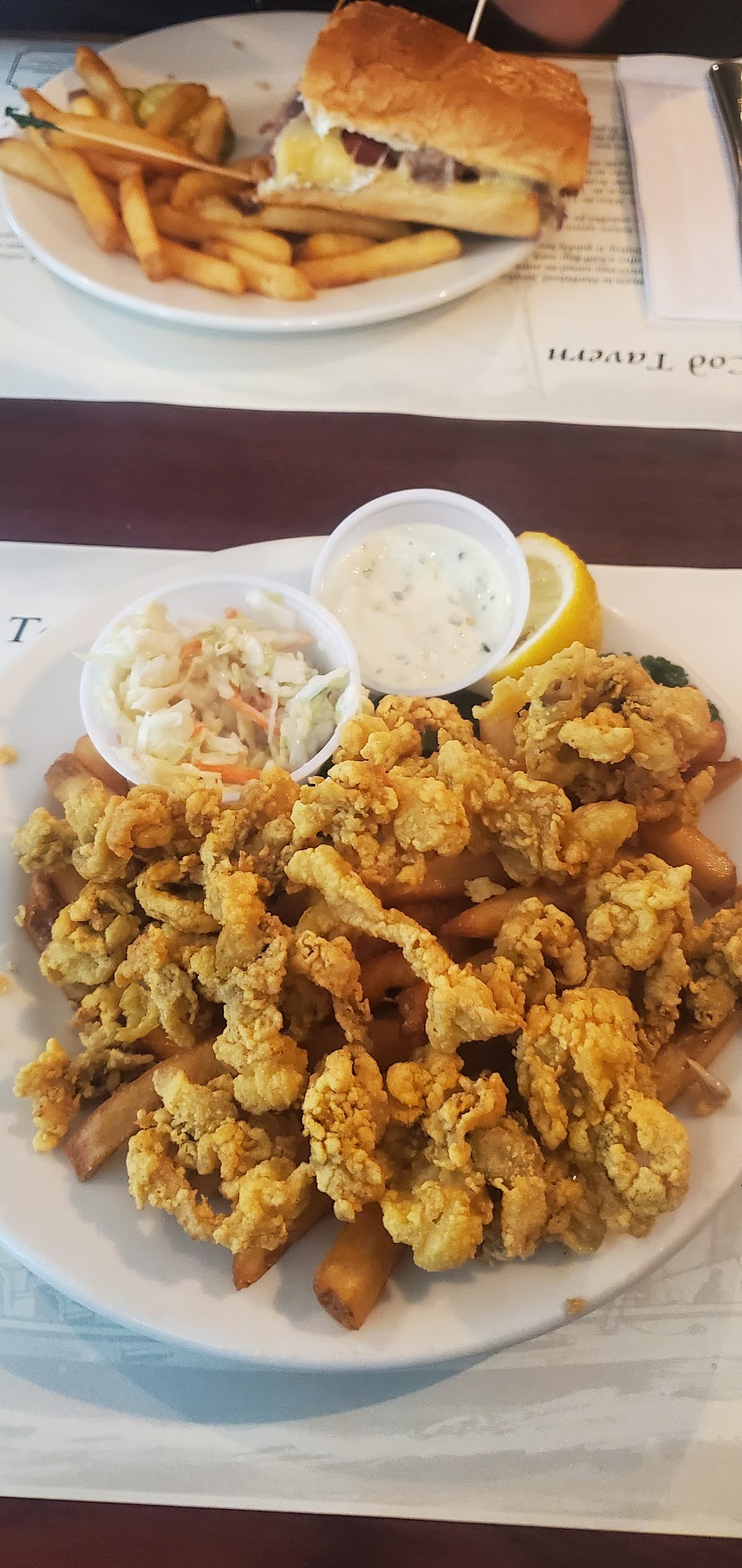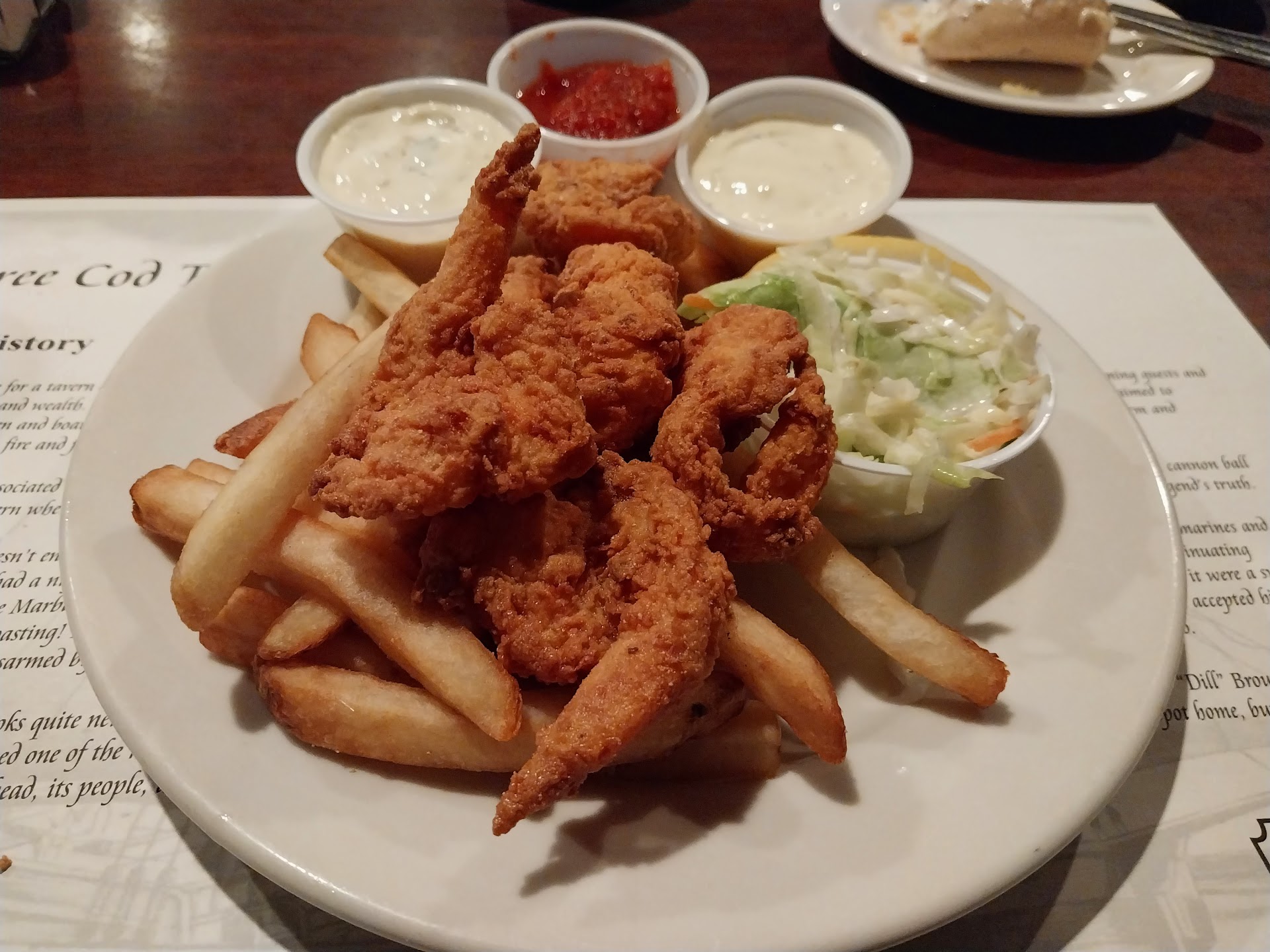 Husband had the fried haddock with fries and slaw. The fish was good, the fries were good, and the coleslaw smelled like a home depot lumberyard and tasted like it too.