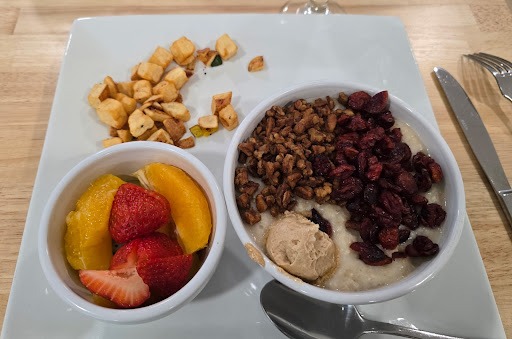 My buddy is vegan and had bowl of oatmeal, sides of fruit and potatoes. He thought the potato portion was small. Not worth deducting a star IMO.