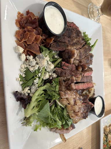 Very impressed and pleased with our dining experience here. We arrived just after 11 am and were promptly seated. We tried the turkey cranberry panini, the steak salad, and the Cajun chicken Alfredo. The panini was made with in house roasted turkey with a cream cheese cranberry spread. It provided good flavor but was not overpowering cranberry. The bread was particularly good with a warm fry-bread like texture in the middle and a crispy outside. The Cajun chicken Alfredo included delicious Parmesan toast, the chicken breast was well cooked but nothing exceptional. The Alfredo sauce had a good buttery flavor blending with the Parmesan and coated the pasta well. Pasta texture was good just softer than Al dente. Lastly, the vegetables including onion, green pepper and mushrooms finished the experience with a mild green pepper flavor that blended well with the Parmesan and butter. The steak salad came with a 10 oz ribeye sliced and laid across the greens. I got my steak medium rare and the only thing I would change is to order the steak medium to cook the fat a little more. The cook did a good job delivering medium rare. Different salad components including bacon, blue cheese, sautéed mushrooms, and onions were segregated around the plate so you could control the mixture. I chose ranch as my dressing and enjoyed the salad.