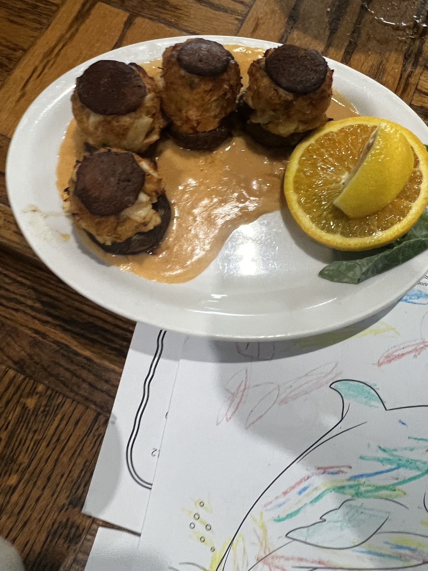 This was by far our best dinner on the island. Tuna bites were great. Burgers were great. Mushroom caps were great. Lobster-cargot (lobster served escargot style) was awesome. Mushroom caps were awesome. Everyone loved their food. It had a great family atmosphere, and our children were all welcome with children’s menus and plenty of crayons and extra coloring paper.
