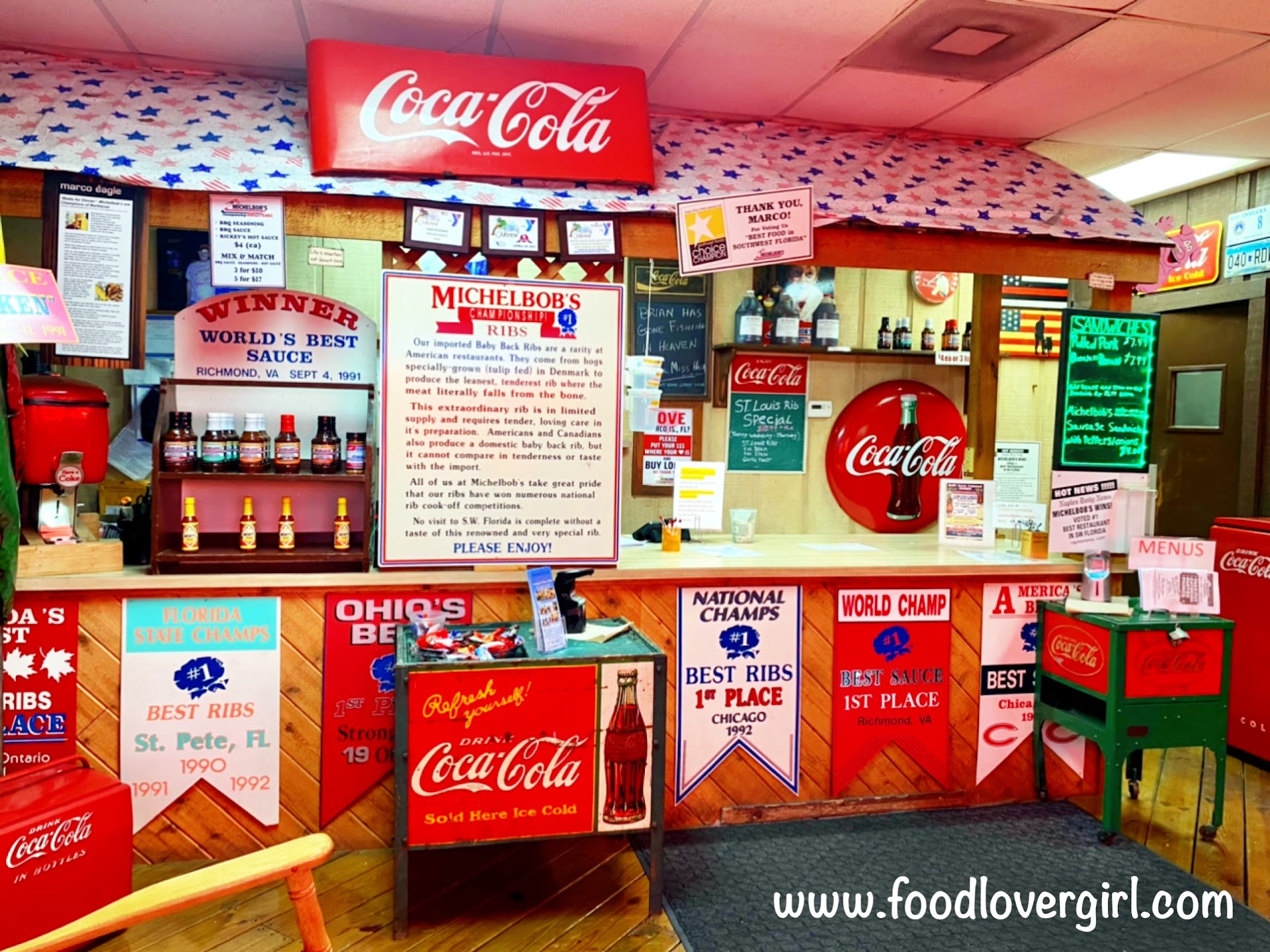 During our visit to Marco Island in the late autumn, we got to try some tasty BBQ from Michelbob’s. This location is take-out only, while the Naples location is where you can dine in.