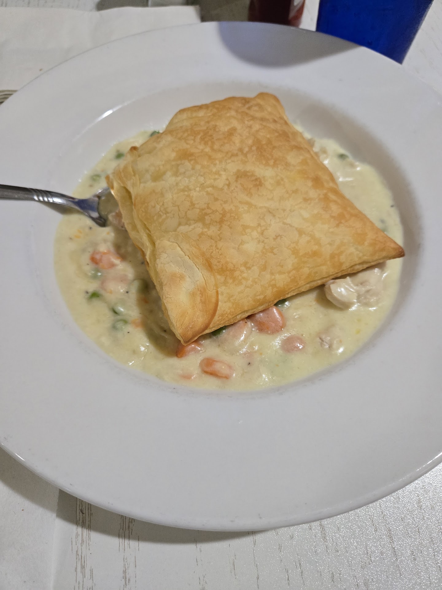 This review is not ill-intended or to tarnish a business. I don’t leave reviews ever, for anything. We’ve been eyeing this place for the 4 days we’ve been here. It’s across from our hotel and super convenient. The reviews for the most part are wonderful. So we were so excited to try this place. We noticed the parking lot was empty all nights we were here which we thought was strange if it’s rated so well, but gave it a shot anyway.. We reviewed the menu before arriving to be familiar with what they have to offer. When you first walk in, a giant digital menu greets you to choose from. I noticed right away it was much smaller than their menu online. That was off putting but we each found something. When you go to pay at the register, there’s a small laminated menu right in front that is the FULL menu. I asked them if that’s the full menu that’s available and I wasn’t answered, just stared at. So we just ordered what we had already found. You seat yourself after ordering at their counter. One thing I will say I noticed, is the menu is kind of all over the place. There really isn’t a similar item to another on there. It ranges greatly, which made me a little curious. Anywho, we got our food (pizza for the kids, chicken pot pie for myself, grouper francesse for hubby). Kids ate the pizza, which appeared to be a frozen one heated up. The chicken pot pie was super underwhelming, which I was so excited to try. It had no flavor and just completely lacked. Husbands grouper had some sort of lemon butter/white wine sauce that was almost in a gelatin form, he was very put off from it, and he’s not picky whatsoever, so that kind of sealed the deal right then. I guess overall we were just truly surprised as the reviews are so wonderful here. The flavor is just not there at all sadly. $75 wasted. I had a short chat with what I think was the owner, and he was such a sweet man. You can tell he cares about his customers. I just wish the food had more to offer. Or maybe we just had a terribly unlucky day? Just wanted to warn others in case they are chancing it based on...