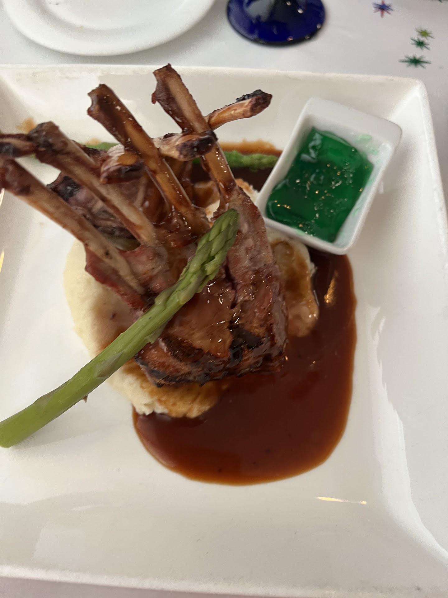 The good: They wrote Happy Birthday on our tablecloth and wished me a Happy Birthday. A nice touch. Server was quick to welcome us and walked through the specials. The rack of lamb was beautifully prepared and well flavored. The special for the night Shrimp Scampi was also a hit for a member of our party.