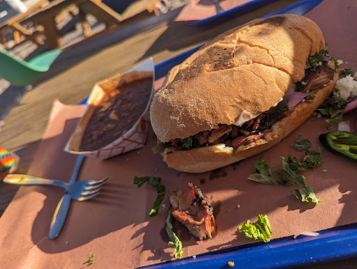 Read moreOne of my favorite things about being a recent Marfa transplant is that now I have the opportunity to try all the places that I wouldn't have the chance to hit on tourist time, and Convenience West is one of those places. You know as soon as you roll up that they are not playing. Line of people outside. A grill big enough to sleep 2. The menu written in Sharpie on some butcher paper. I ordered the rib torta and the reaction from the lady at the register was "hell yeah! You're gonna love that one." And she was right. The sandwich plus a side of cajun red beans were more than even a seasoned eater like myself could put away in one attempt, but damn if I didn't try. I hated the idea of any of this excellent meal going to waste. Barbecue places can be really hit or miss. I've been to restaurants that traffic in dry meat you're expected to soak in sauce to make it palatable. This is not one of those spots. Their meats, their entrees, and their sides are all absolutely killer. I'm honestly looking forward to...