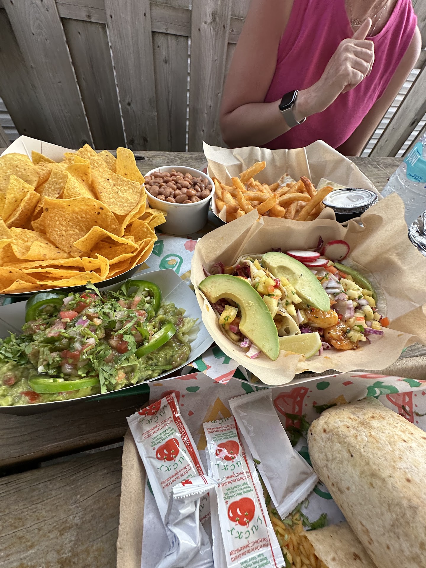 We were outside, island air breezing, tables were limited, but we landed a good spot. It was busy, but not chaotic—and for a place this close to the beach, the check wasn’t outrageous. That was a win.