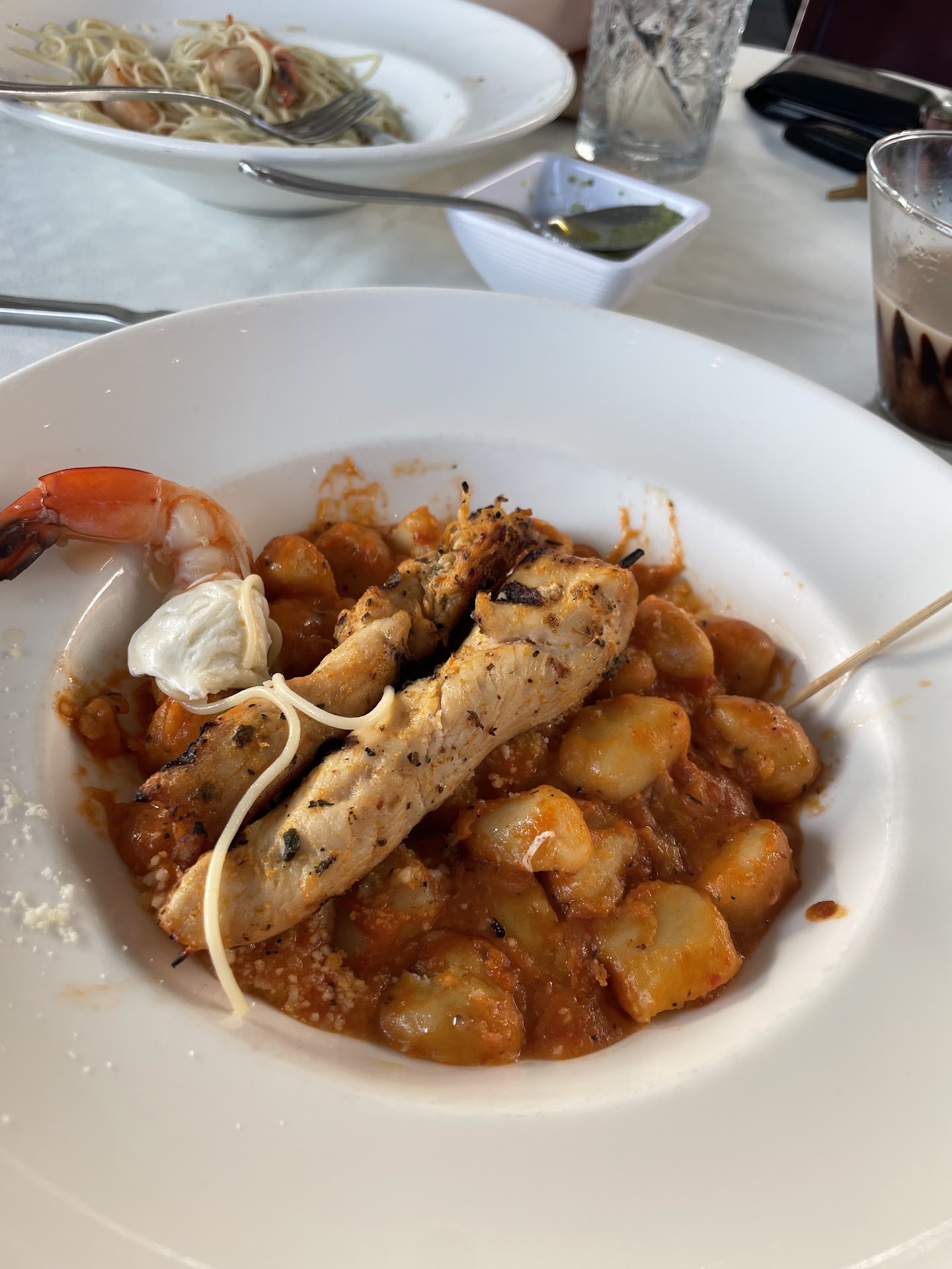 For a main course, my date had the Seafood Plaki which arrived in a Volcano Shaped dish. I wasn't too impressed by it. Plating was something of a crock pot. Everything inside seemed too light in flavor, probably could have used some salt, however the shrimp were semi pre-cooked/seasoned on the grill before being added to this dish and tasted amazing.