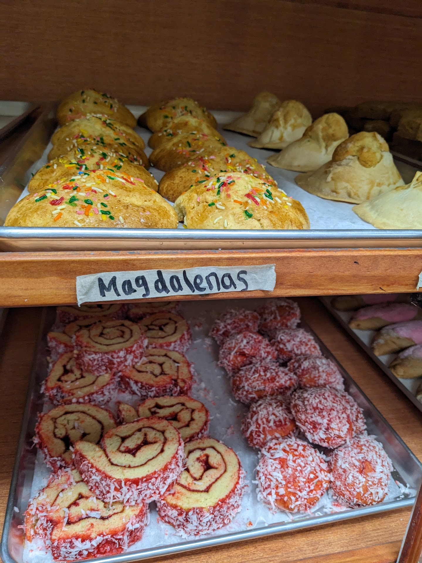 Read moreI was driving north bound, in neeeeed of a cafezinho, and I made that sharp right turn and entered a place I was not expecting.. the wooden bakery shelf was more organized and on point with deliciousness overflowing Mexican heritage and taste.. we got Orejas, uno Borracho(had it with my coffee), and a pan de platano con walnuts.. ' I will be back ' para mas sweets and tangy strawberry cake... 🍓 sooo gooooood and fluffy .. super affordable .. get a bag and enjoy them at...