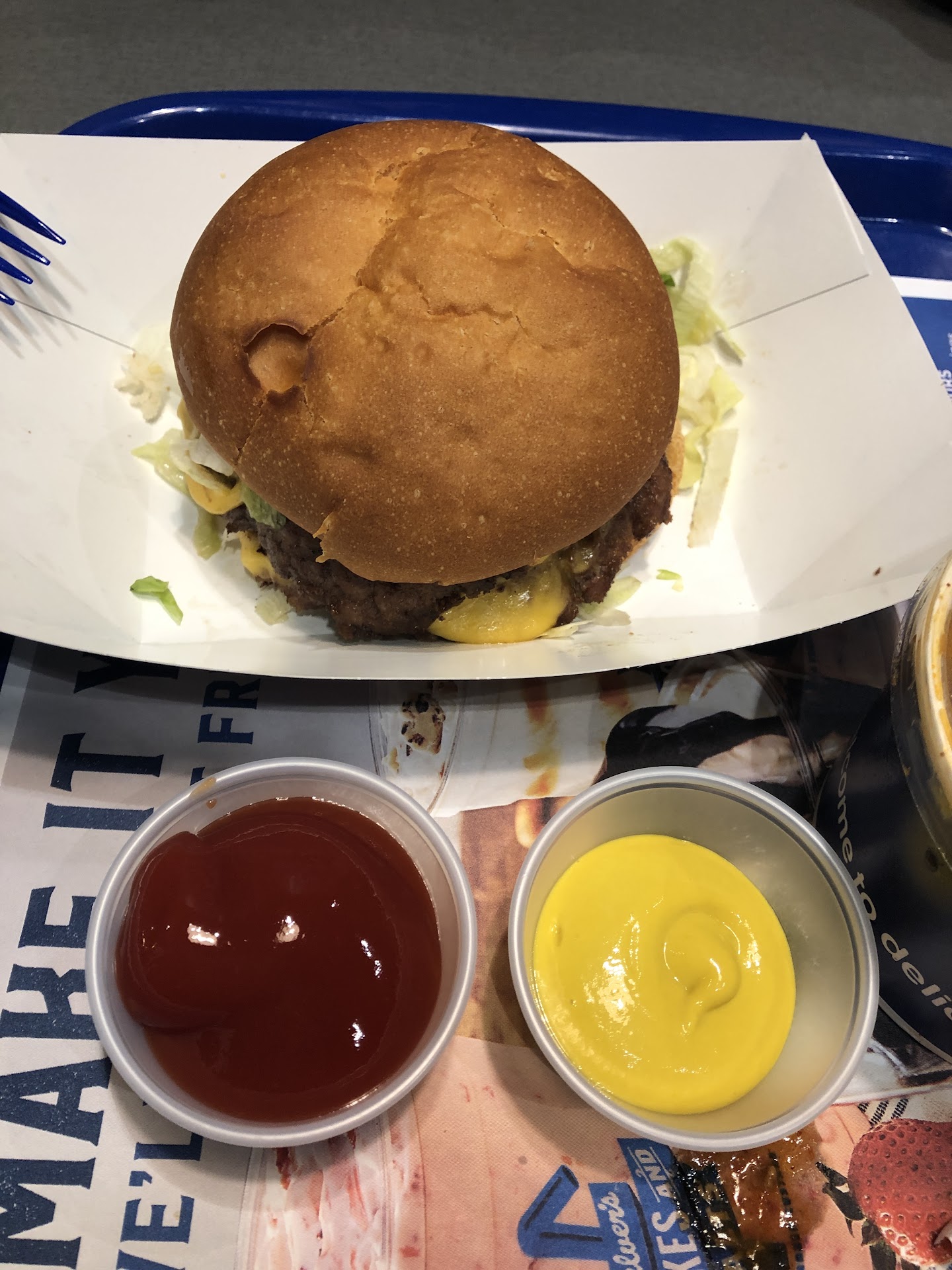 Read moreMay 5, 2024 We returned again because someone gave us a gift card so we figured we give it another shot. Among other things we ordered a single butter burger and the employee rang up a double and we had to correct him. We also ordered a small side salad, and when the food arrived at our table the salad was missing, so the person went to go get it and brought us back a chicken salad. We informed him that was not what we had ordered but it should be a small side salad so he went and got us one of those. While we were eating I happened to notice that the ticket from the kitchen said chicken salad even though that is not what we ordered, so I checked the receipt and we have been charged for the full size garden salad. So I ended up going back to the counter and asking for the difference and they refunded the entire salad. The food was OK, but certainly not worth the money that you pay at this place. We noticed that there were a lot of employees there, but we also noted that many of the booths that we tried to sit at were not clean. We also saw that the lights in the ceiling were extremely dusty. We ended with some chocolate custard which once again was the highlight, but still not that great.