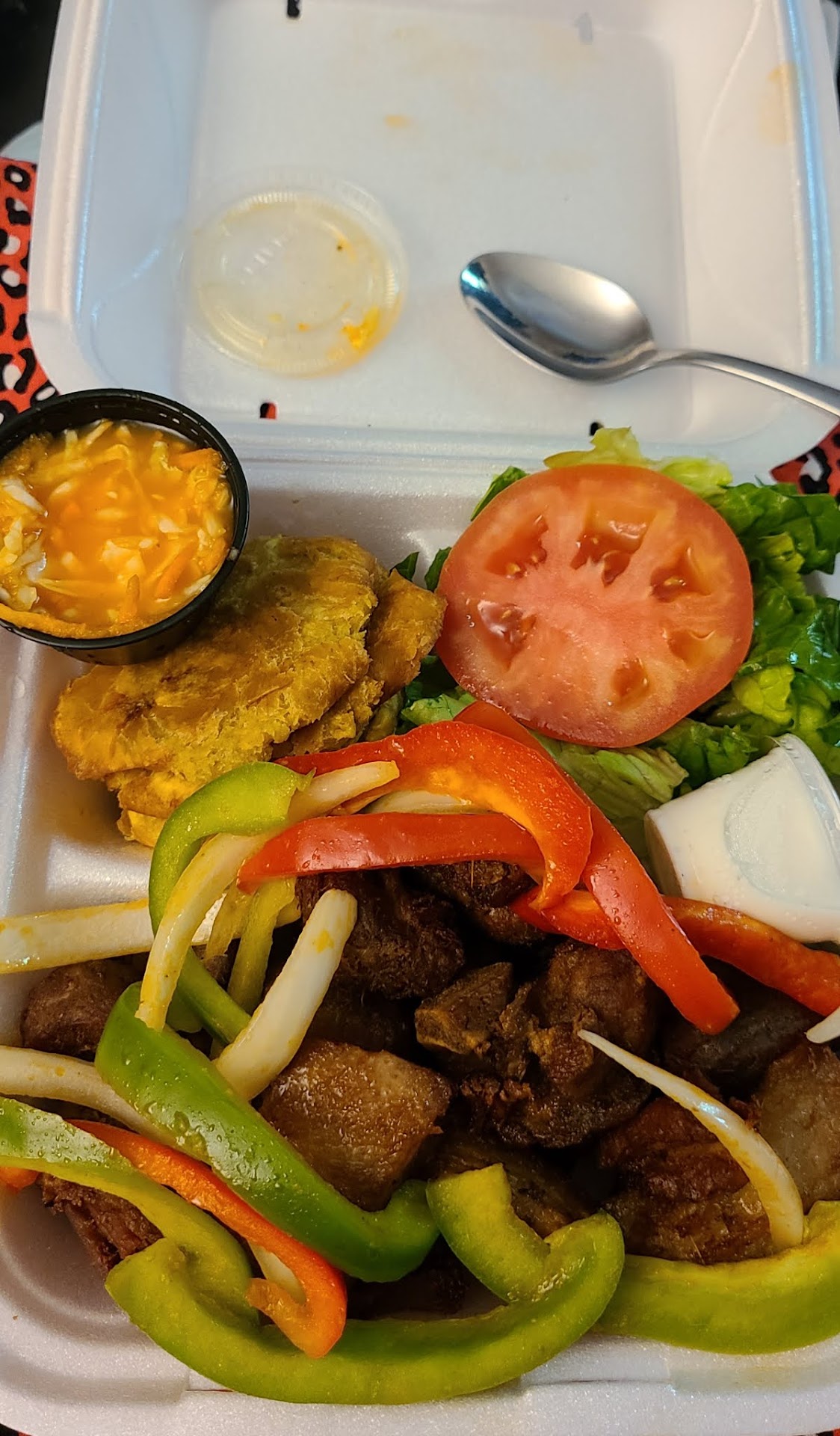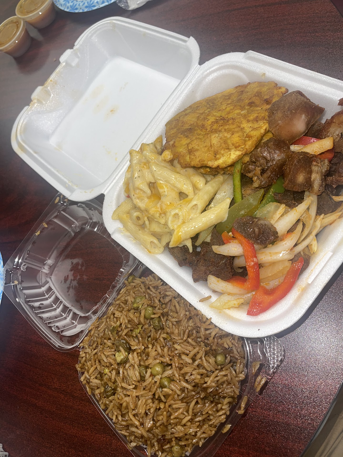 I ordered food from here on 6/2/2022 and when i got the food I'm not sure if it was the Doordash person who manhandled my food, but it looked sloppy and i only got two piece of meat.??? No sauce . As far as i can see from these pictures they look well placed .... as for the food I had to throw it away... I didn't call them and tell them what had happen, because i think the Doordash person ate from it... I am trying it again today 6/16/2022 and I will post if this was My Doordash person or if it was them … I'm ordering Ragout (Stew Cow Foot and rice and bean with a side of mac and cheese. Again,.... the same exact food from before and i will let you know how this food came to me.
