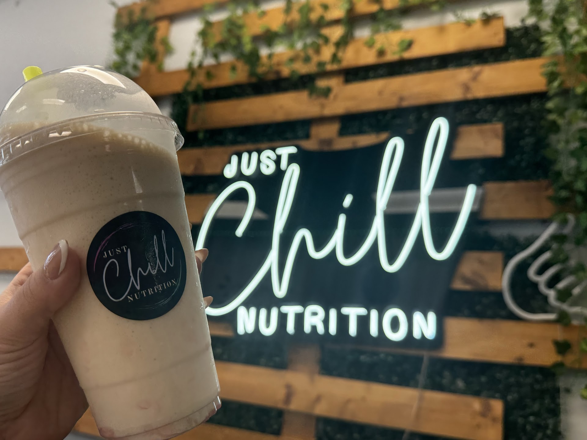 Read moreMy husband came across Just Chill Nutrition and immediately wanted to visit. He found it via Instagram. Inside, they offered aesthetic backdrops. The service was great, friendly, patient, and quick turn around. They have a list full of delicious protein shakes and teas to chose from, we were in the mood to try the strawberry cheesecake, and the mint chocolate. Mint chocolate was delicious the strawberry shortcake was decent, I’m definitely interested in coming back and trying another protein shake. However, the protein waffles are addicting. Very delicious, they offer a combo, with the shake and waffle. Highly recommend that combo. Overall, definitely stop by just chill nutrition, You will definitely enjoy your visit and leave feeling full...