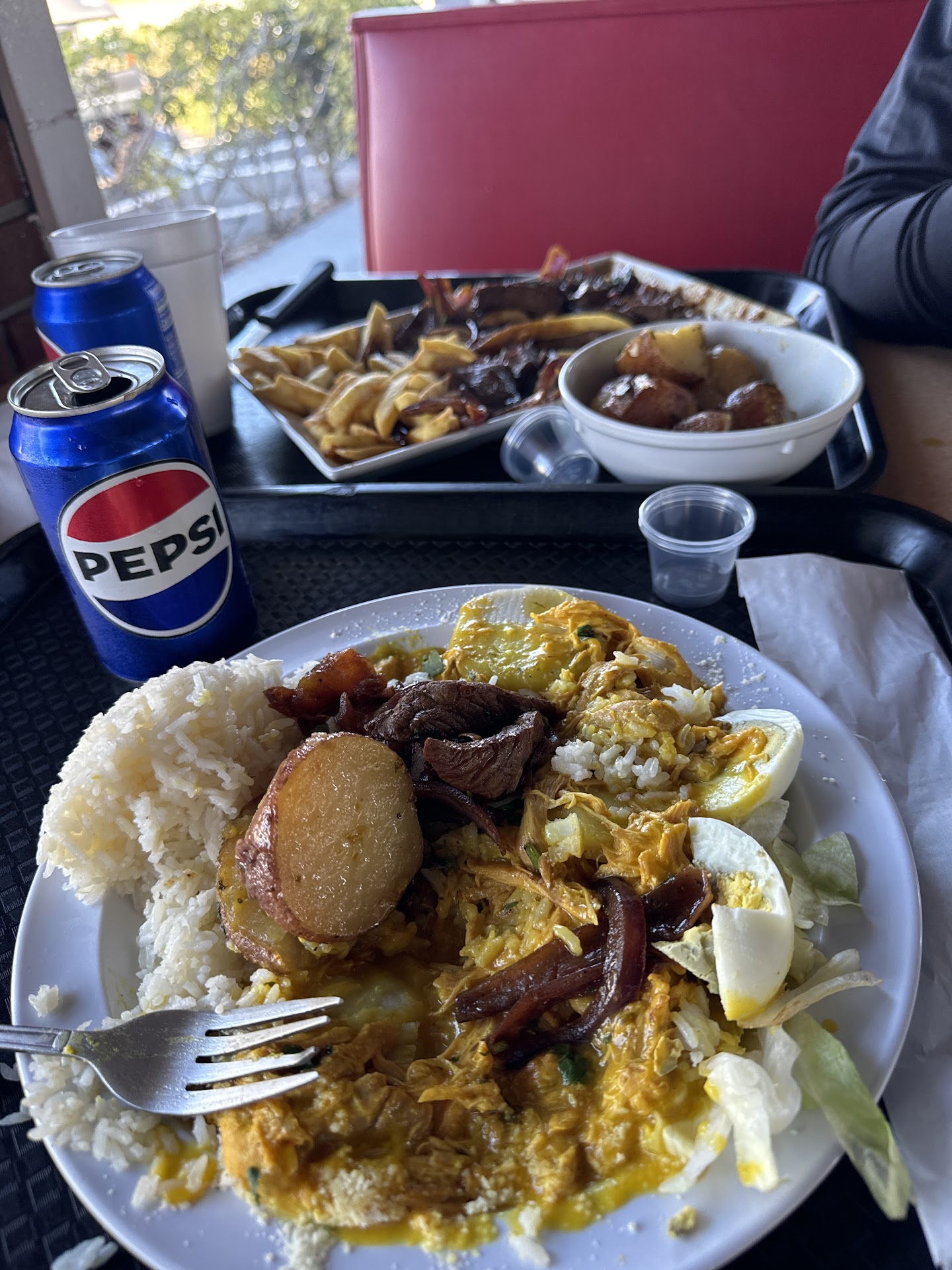 As for the atmosphere, the music was so loud at 12 pm that it felt more like a party than a restaurant. It was impossible to enjoy a meal in peace. Additionally, the ripe plantains I ordered were too hard, almost inedible.