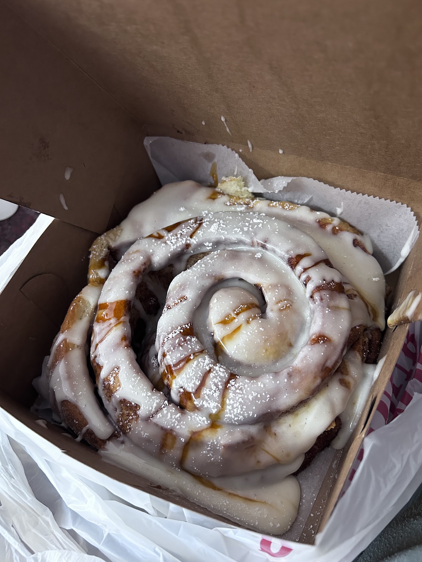 We decided to start with the cinnamon roll that stars in so many people's reviews. This is not Pillsbury from a can. It is huge, soft, and drowning in icing. Whatever progress I made with the Lean Cuisine and running this week was instantly undone but it was worth it.