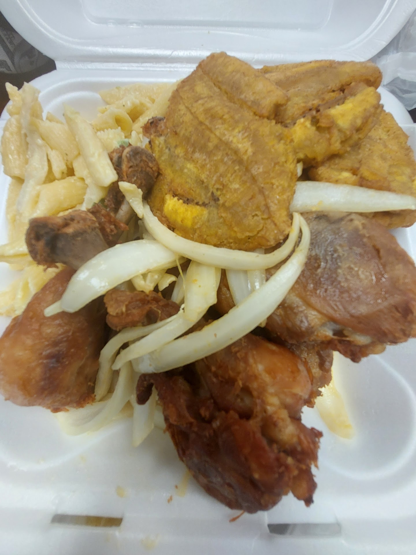 Read moreFinally a decent Haitian restaurant in the area that I will be back too. This is was recommended by Haitian Mami I know and I'm glad I asked if she knew of any good Haitian restaurants in the area. I ordered the fried chicken complete and my coworker ordered the stew chicken. Everything was flavorful and tasted fresh. The portions are HUGE I never been to a Haitian restaurant that served this much meat rice plantains and macaroni and cheese. The macaroni was warm Haitian macaroni and cheese which I prefer instead of the cold salad other places try to offer you. The only thing that I didn't really like the taste of was the pickled onions, I've tasted better elsewhere. We will definitely be back and hopefully the legumes will be ready because we wanted to try that as well but they just opened up and started cooking so I can understand if everything on the menu is not quite ready. Service was meh, there was an older woman who came in towards me receiving my food and was...