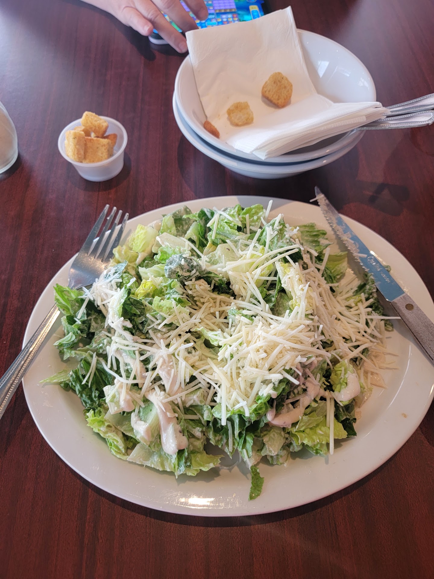 The Caesar salad was lacking in dressing (and mostly crunchy leaf stems). Felt like we were eating plain lettuce. Had to request additional dressing.