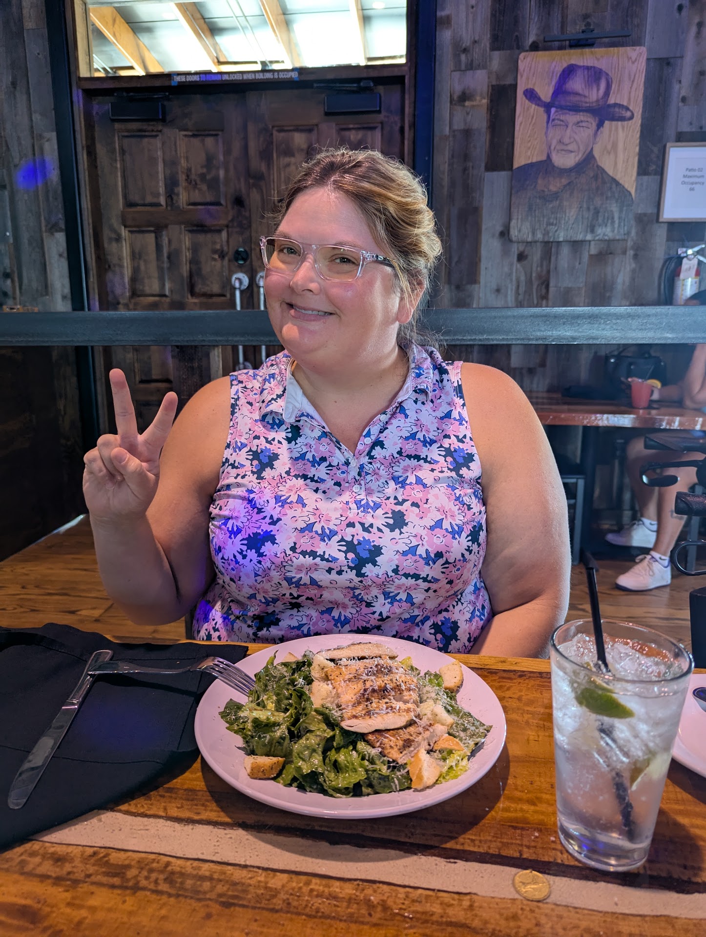 The lady ordered the Roadhouse Caesar Salad — romaine hearts so crisp they snapped like dry twigs under a desperado's boot, with garlic-herb croutons and shavings of Pecorino like snowflakes off Mount Cheese. She said it was the best salad she’d ever had, and brother, she’s seen things. That creamy Caesar dressing? Homemade. Tasted like it was churned by angels on probation.